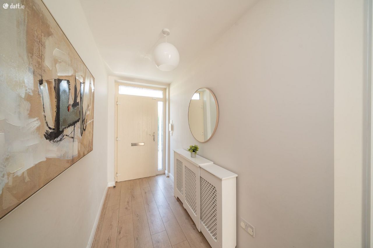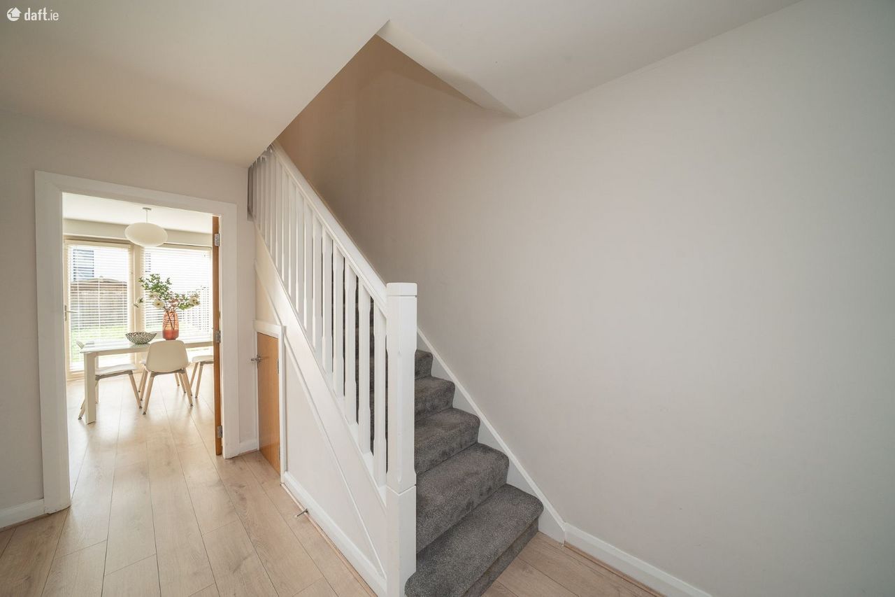 This stunning property features an attractive faade with a front patio which leads to an entrance hall with wooden floors, a storage room, understairs storage and a guest w.c. To the left of the hallway is a spacious living room with wooden floors and a bay window. The light filled open plan kitchen & dining area incorporates a utility room and boasts plenty of counter & cupboard space. Double doors open to a south west facing patio & garden, an ideal place to relax & entertain. The first floor consists of three bedrooms and the family bathroom. The generous sized bathroom enjoys a tiled floor, partially tiled walls, a towel radiator and high spec sanitary ware. The master bedroom has laminate floors, sophisticated fitted wardrobes and also has a stylish ensuite. There are two bedrooms to the front of the home and both have fitted wardrobes and laminate floors. The hotpress is located on the landing. The attic has been recently converted to make a fourth bedroom and has fitted wardrobes, wooden floors, three Velux windows and an eye catching ensuite with built in storage. This amazing property has parking to the front.