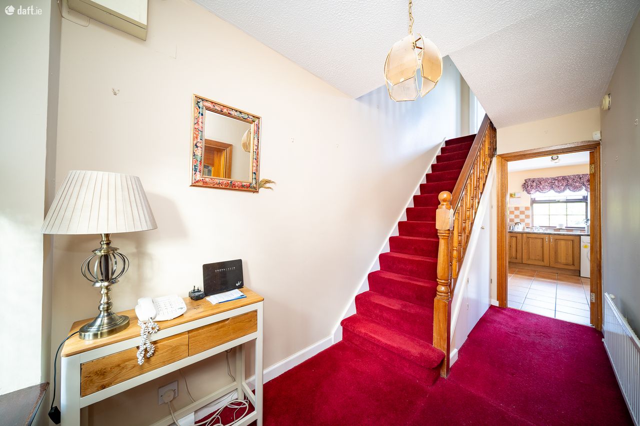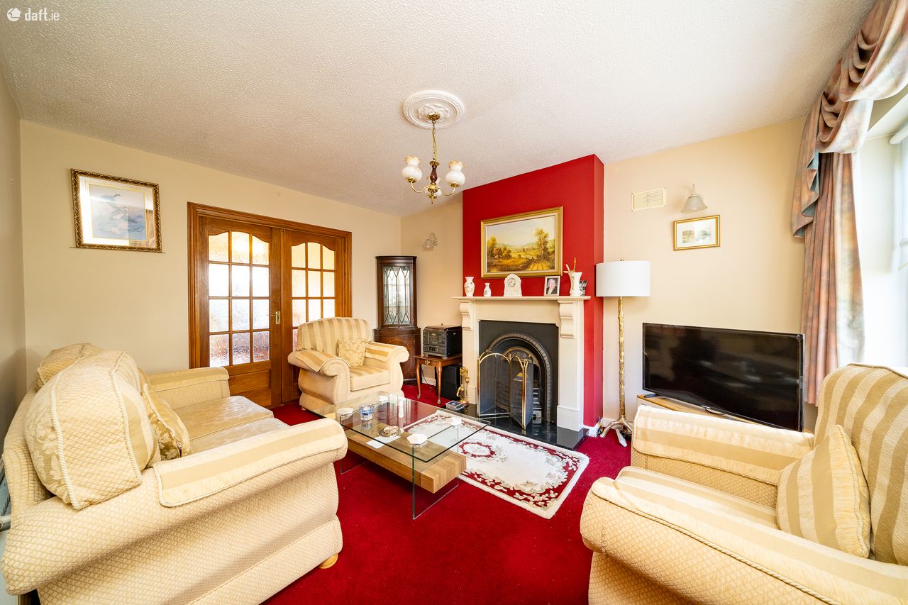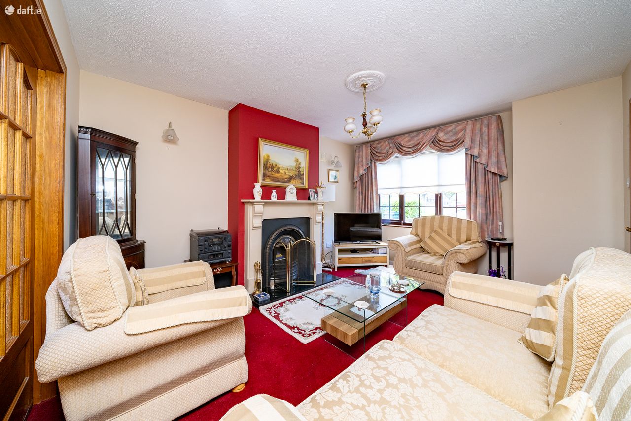 This charming property features a red brick wall and a gated driveway for ample parking. The attractive partial red brick facade and storm porch lead to an entrance hall with comfy carpet and understairs storage. To the right of the hallway is a light filled south west facing living room with a stained glass door, a gas fireplace and double doors to the dining area. The spacious open plan kitchen & dining area can also be accessed from the hallway. The L shaped kitchen has a tiled floor, checkered splashback tiling and plenty of counter & cupboard space. The dining space has laminate floors and double doors open to a sunny patio and garden with side access to the front of property. This amazing garden is an ideal place to relax & entertain. Upstairs consists of three bedrooms and the family bathroom. The generous sized bathroom has been recently refurbished, it is fully tiled and comes with a Monsoon shower, heated towel radiator and undersink storage. There are two double bedrooms with comfy carpet and sophisticated fitted wardrobes. The third bedroom has carpet and could make an ideal home office. The hotpress and attic are accessed via the landing.
