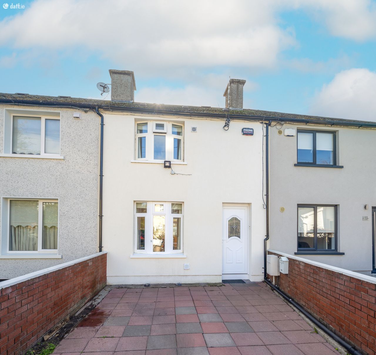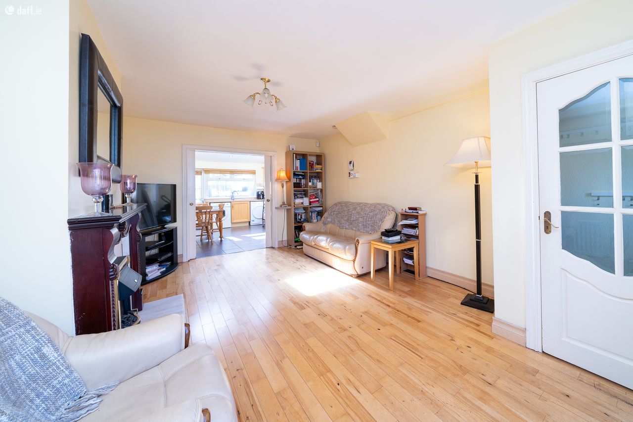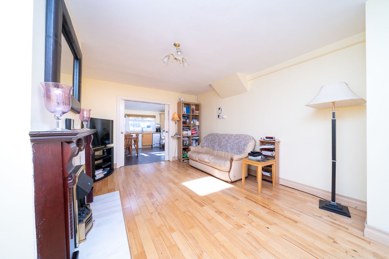 This superb property features a paved front driveway with red brick walls on either side. The attractive facade has external insulation and there are solar panels also. The entrance hall has a tiled floor and leads to the living room on the left hand side. The spacious living room enjoys a bay window, solid floors and an electric fireplace. Double glass sliding doors open to a fantastic light filled open plan kitchen & dining area extension with two large Velux windows, spotlights, a tiled floor, splashback tiling and plenty of counter & cupboard space. A guest w.c. with a tiled floor is situated off a small hallway just off the kitchen. The kitchen opens to a south facing courtyard with a large storage shed. Upstairs consists of two double bedrooms and the generous sized fully tiled family bathroom. Both bedrooms have wooden floors while the front bedroom has sophisticated fitted wardrobes and mirrored sliderobes. The fully insulated attic is accessed via the landing.