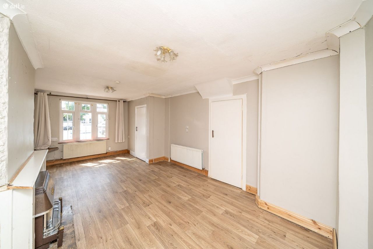 This superb property features a south facing front patio leading to an eye catching facade. The entrance hall has a tiled floor and leads to a spacious living room with linoleum flooring, ornate coving, a gas fireplace and understairs storage. The T shaped bathroom is a generous size and comes with partially tiled walls. The open plan extended kitchen & dining area boasts a tiled floor, splashback tiling, wood panelled walls and plenty of counter & cupboard space in the L shaped kitchen. French doors open to a sunny garden with a paved patio making it an ideal place to relax & entertain. All three bedrooms are upstairs and enjoy laminate floors, while the double bedrooms also have built in storage. The hotpress is located in the front bedroom while the attic is accessed via a Stira in the single bedroom. This fantastic property benefits from free on street parking to the front.