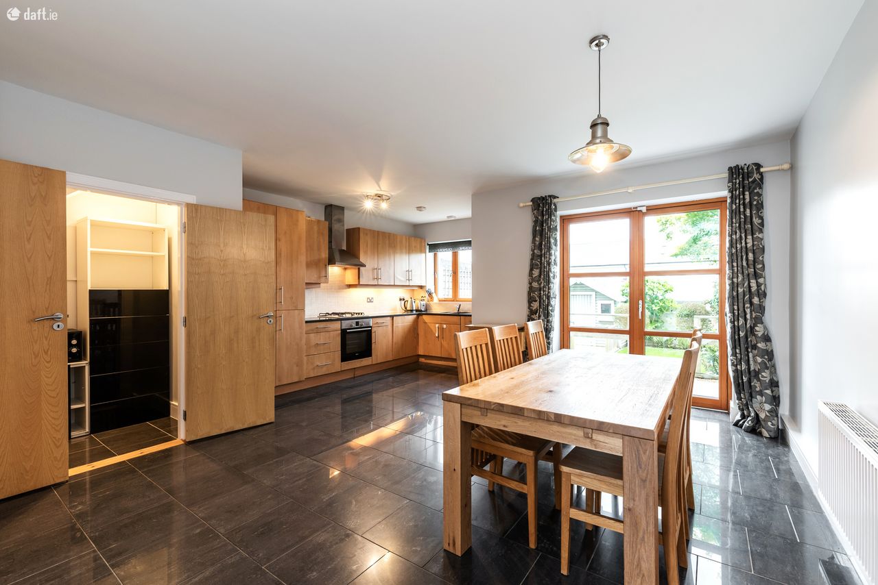 This home comprises of an entrance hall with a storage room and guest w.c. leading to spacious kitchen and dining area with a tiled floor and all mod cons. The kitchen has a pantry and ample cupboard space. Double doors from the dining space lead to a tasteful and comfortable living area with a gas fireplace. On the other side of the dining area are patio doors opening onto a beautifully maintained garden and patio area with a Barna Shed. Upstairs there are 2 double bedrooms with plenty of wardrobes in each room. The master bedroom has an ensuite. A main bathroom, a single bedroom and a hot press complete the accommodation. Parking is provided for at the front of the house.
