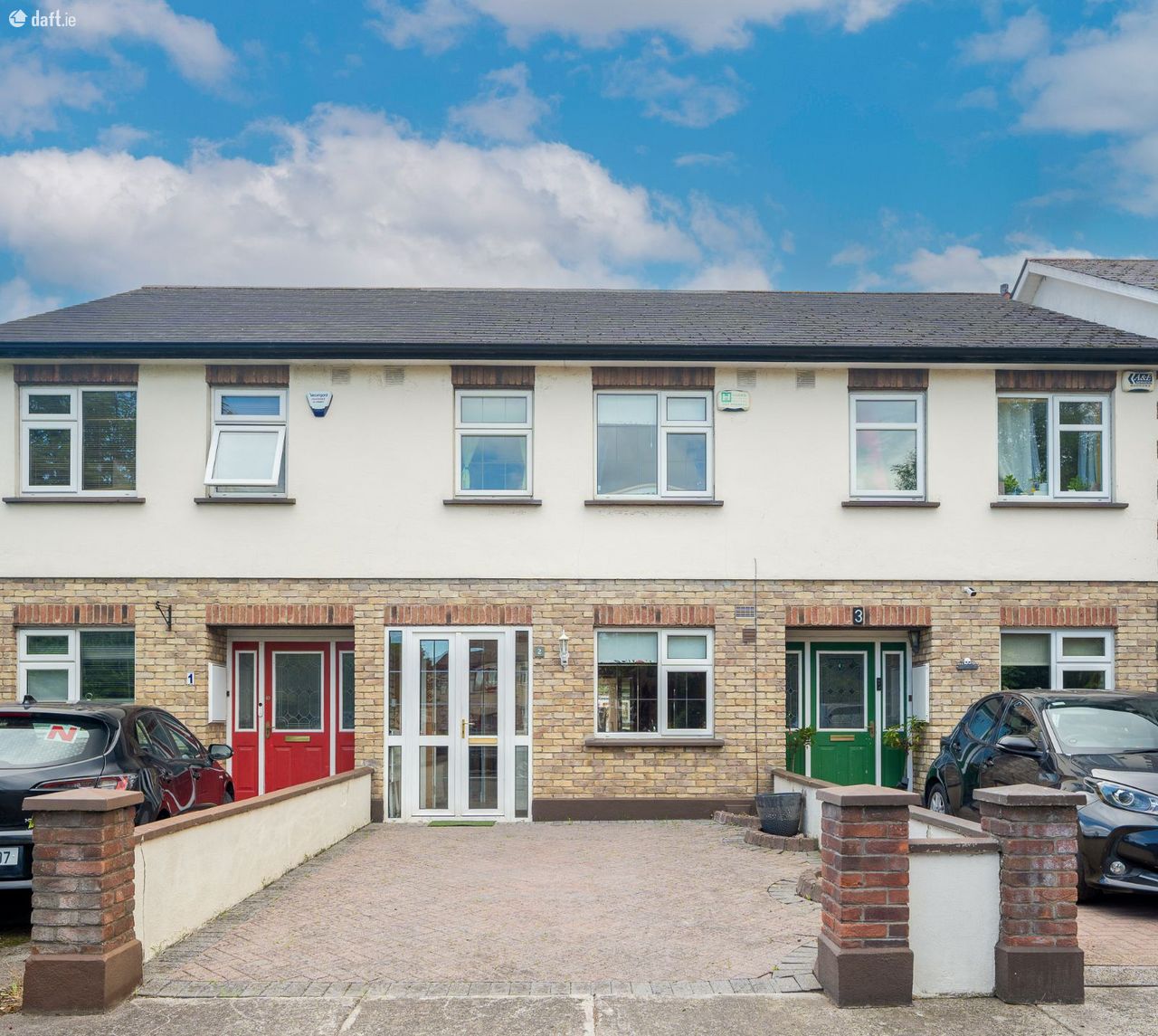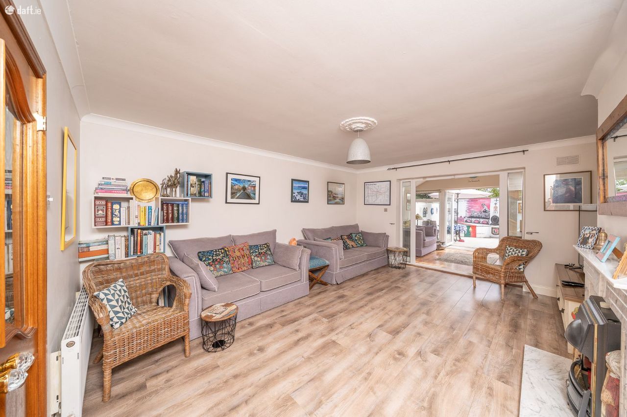 This stunning property features a cobblelock driveway leading to an attractive partial brick facade. The storm porch has a tiled floor and opens to an entrance hall which in turn leads to the kitchen. The charming kitchen and breakfast area enjoys a tiled floor, splashback tiling, plenty of counter & cupboard space and a storage room. Double doors open to a light filled living room with laminate floors, an electric fireplace and ornate coving. A second set of double doors open to a light filled extension with two Velux windows and spotlights making it an ideal place for dining, relaxing & entertaining. French double doors open to an eye catching south east facing paved garden. Upstairs consists of three bedrooms and the family bathroom. The master bedroom is situated at the rear of the property and enjoys comfy carpet, sophisticated sliderobes and incorporates a stylish ensuite. The second double bedroom and the single bedroom are located at the front of the home. Both bedrooms have laminate floors & fitted wardrobes. The single bedroom is currently set up as a home office. The generous sized family bathroom is fully tiled and has an electric shower. The former hotpress, now a storage room is located on the landing. The accommodation is completed by a spacious attic conversion with a Velux window and eaves storage. This fantastic space would make an ideal playroom.