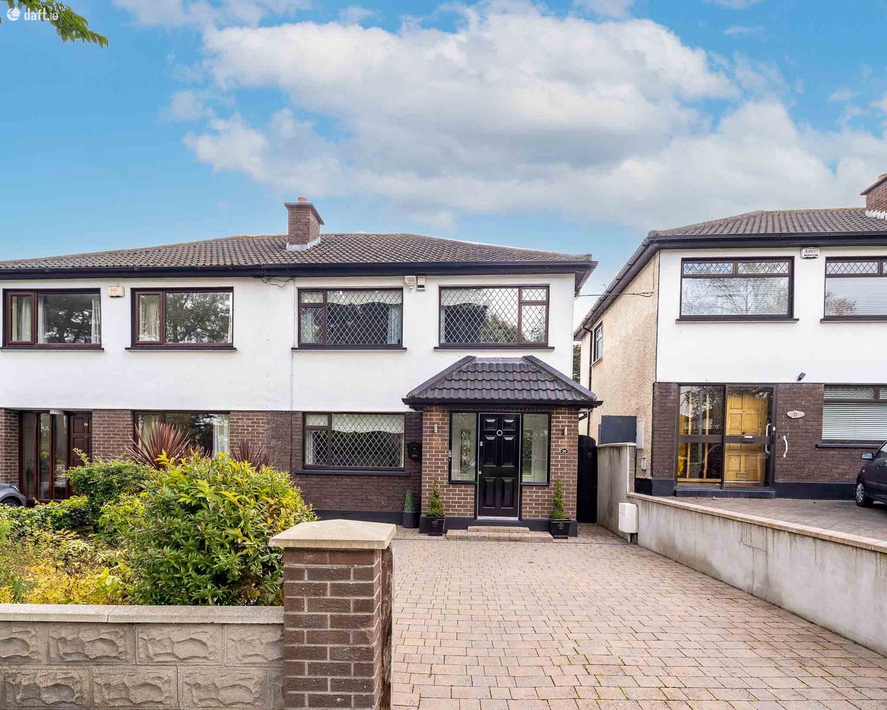 This outstanding property overlooks a large green area and features a cobblelock driveway leading to an attractive partial brick facade. An extended storm porch with a tiled floor opens to an entrance hall with ornate coving, understairs storage and a tiled floor. The spacious living room boasts a gas fireplace, ornate coving and comfy carpet. There is a guest w.c to the right of the hallway which continues to a light filled open plan lounge, dining area and kitchen. This amazing extension comes with a tiled floor, two Velux windows, spotlights and built in storage. The fully integrated U shaped high spec kitchen enjoys plenty of counter & cupboard space. A sliding door from the dining area opens to a south east facing garden with side access to the front of the home. The garden also comes with a storage shed which has both plumbing and electricity. Upstairs consists of three double bedrooms and the family bathroom. The generous sized bathroom is fully tiled and has built in storage and a towel radiator. All three bedrooms have carpet flooring while two of the bedrooms feature sophisticated fitted wardrobes. The main bedroom boasts surround storage and a vanity unit. The accommodation is completed by an eye catching attic conversion with two Velux windows and spotlights.