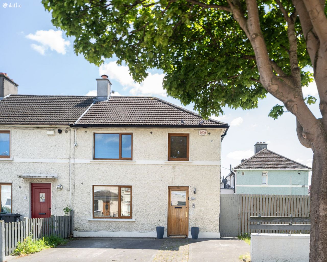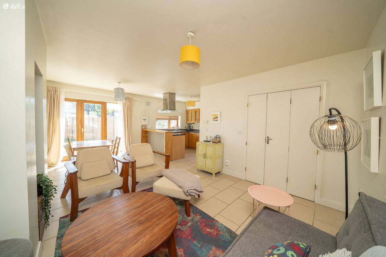 This exceptional property was built in 2008 and features a large front driveway and garden with mature trees leading to an attractive facade. The entrance hall has a tiled floor, understairs storage a guest w.c. The dual aspect open plan living room, dining area & kitchen is a light filled space with a tiled floor, built in storage, a breakfast bar, splashback tiling, plenty of counter & cupboard space and side access to the exterior. French doors open to a south facing garden & patio, an ideal place to relax & entertain. Upstairs consists of two double bedrooms, a home office room and the family bathroom. All three rooms and the landing enjoy solid wooden floors. The high spec bathroom comes with a tiled floor, a towel radiator, built-in storage and an electric shower. The attic is accessed via a Stira on the landing.