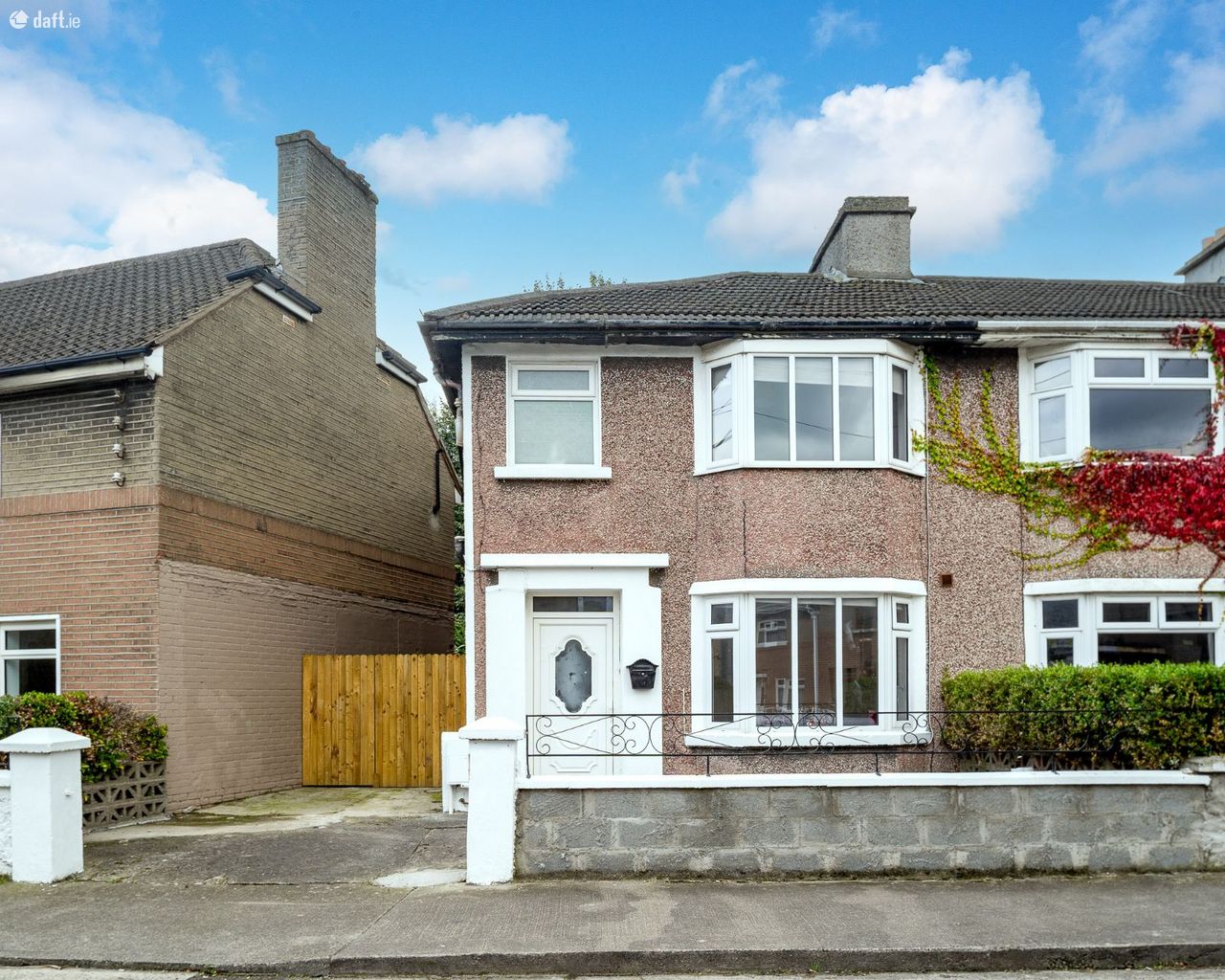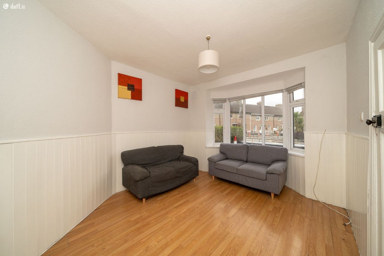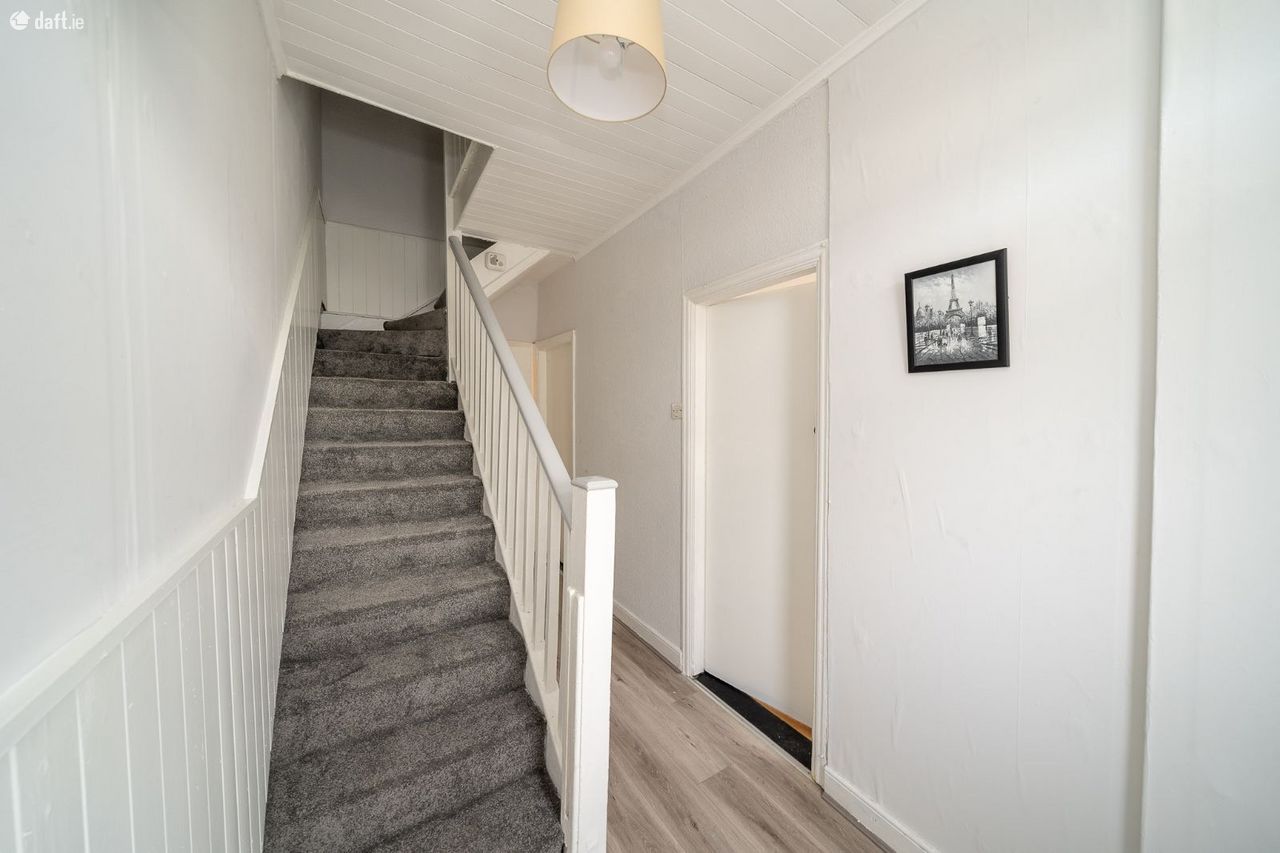 This superb property features a large driveway leading to an attractive pebble dash facade with two bay windows. The entrance hall boasts laminate floors, wood panelled walls & ceilings and understairs storage. The light filled living room enjoys laminate floors, a bay window, wood panelled walls and could also make an ideal playroom, home office or downstairs bedroom. The spacious dining area also has laminate floors, a solid fuel fireplace, built in storage and incorporates the hotpress. The kitchen extension comes with a tiled floor, splashback tiling and plenty of counter & cupboard space. The south east facing garden is accessed via the kitchen, is an ideal place to relax & entertain and has side access to the front of the property. Upstairs consists of three bedrooms and the family bathroom. Two of the bedrooms overlook the back garden and have laminate floors, while the main bedroom at the front of the home has comfy carpet and a bay window. The generous sized family bathroom has an electric shower and the attic is accessed via the landing.