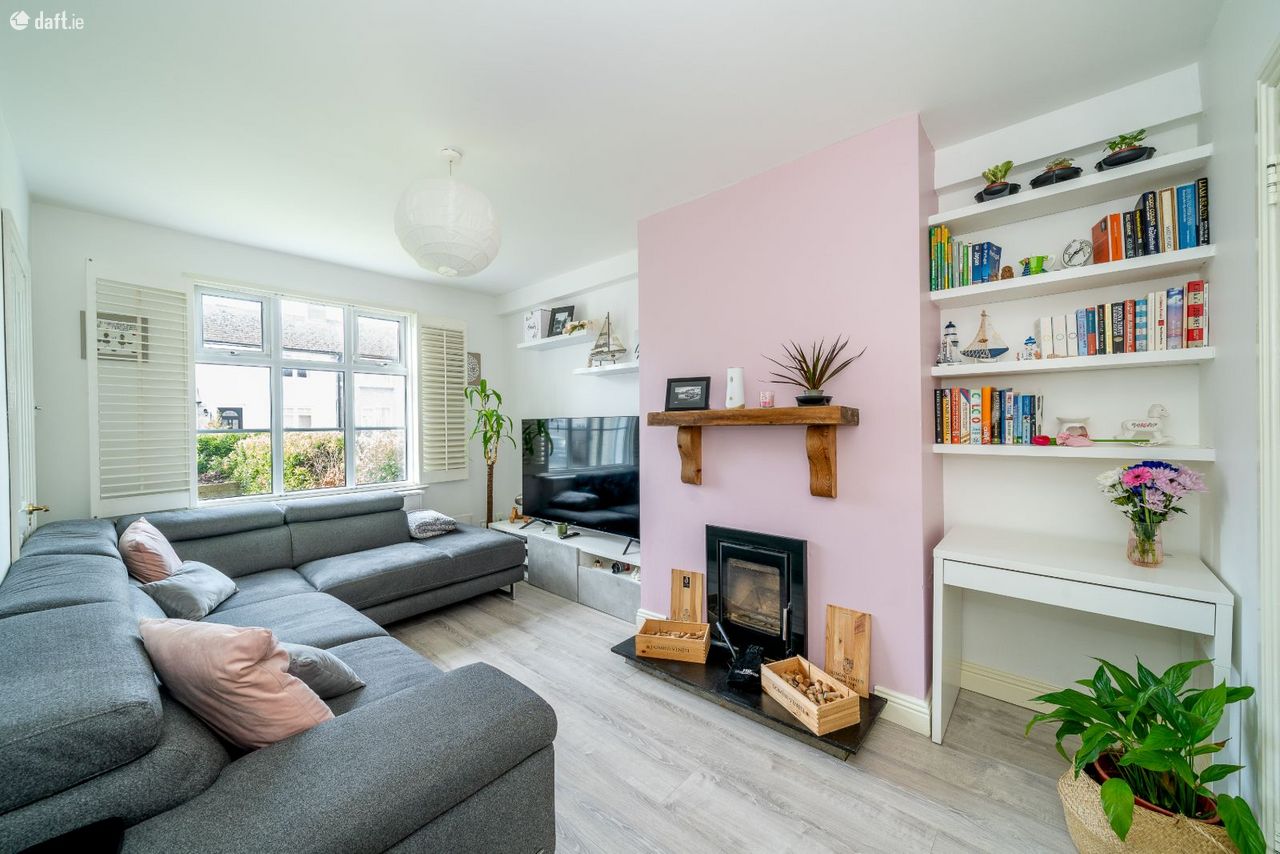 This superbly extended property features a large driveway and south facing front garden which leads to an attractive faade. There is side access to the rear of the property and a storm porch to the front. The entrance hall boasts understairs storage and laminate floors which continue to the living room on the left of the hallway. The living space also enjoys a built in solid fuel stove, a work station with shelving, plantation shutters and double doors to the dining area. The eye catching dining area can also be accessed via the hallway and has room for a breakfast area, built in seating and shelving. The open plan layout maximises spaces & light and creates the perfect flow between the dining space & kitchen. The stylish L shaped kitchen comes with a tiled floor, splashback tiling, plenty of counter & cupboard space, a wood panelled ceiling with two Velux windows & spotlights. The downstairs accommodation is completed by a utility room with ample storage and a tiled floor. The sunny courtyard is accessed via the kitchen and is the perfect place to relax & entertain. Upstairs consists of two double bedrooms and the family bathroom. The sophisticated bathroom has solid wooden floors, an electric shower, partially tiled walls and a hotpress. Both bedrooms have laminate floors and ample storage space. The attic is accessed via a Stira in the back bedroom. This spacious property has been extensively modernised throughout and is an ideal opportunity to purchase a turn key home.