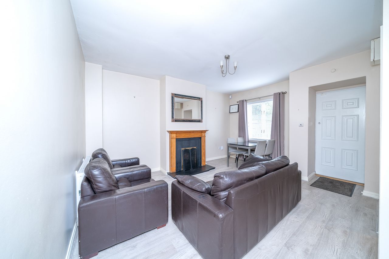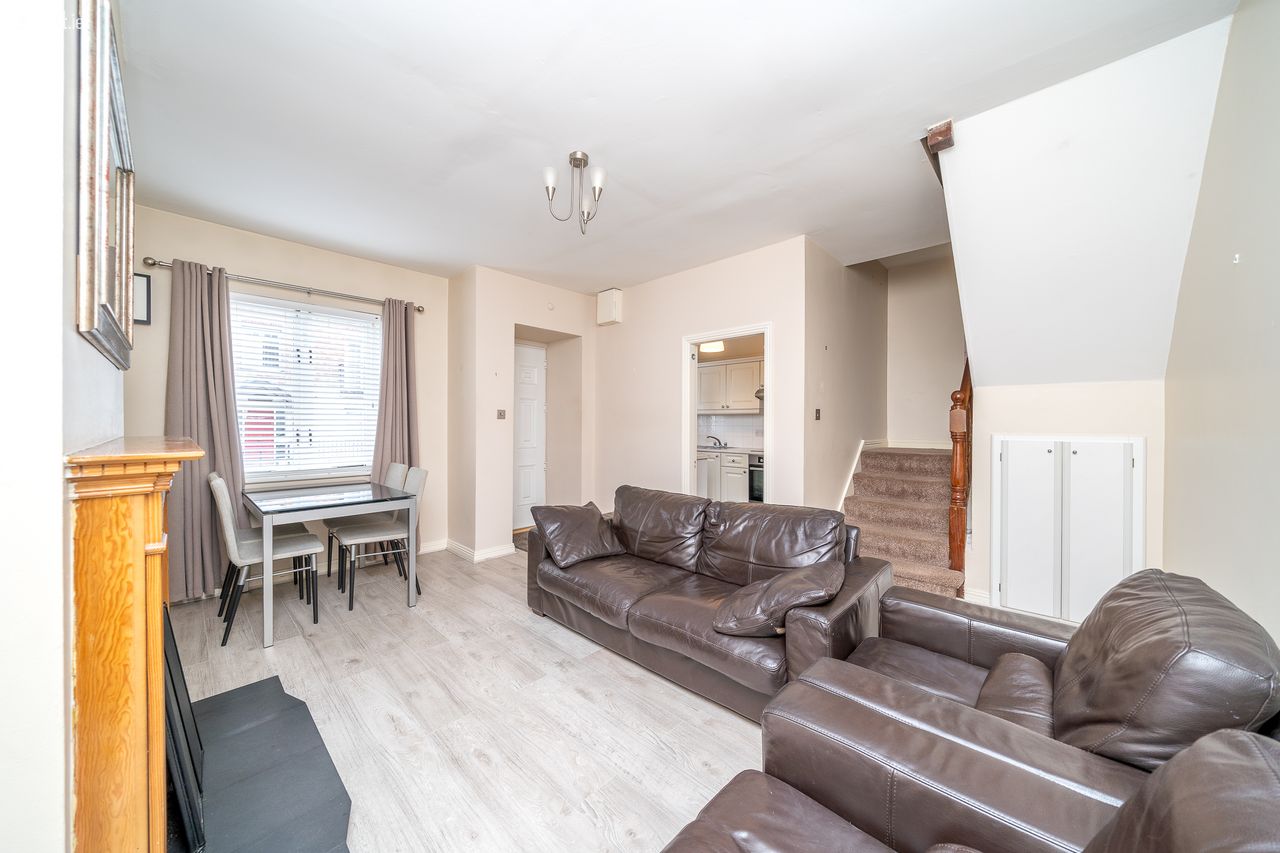This stylish property features an attractive partial red brick facade with own door access. The open plan south east facing living room & dining area boasts laminate floors, a solid fuel fireplace and understairs storage. The separate light filled kitchen is ideally positioned just off the living room and enjoys a tiled floor, splashback tiling and plenty of counter & cupboard space. A stairs with comfy carpet leads to the landing with a hotpress and access to the attic. The carpet continues to both double bedrooms, one of which has sophisticated sliderobes and the other has fitted wardrobes. The accommodation is completed by a generous sized family bathroom with a tiled floor. This exceptional townhouse also benefits from a secure designated car space.
