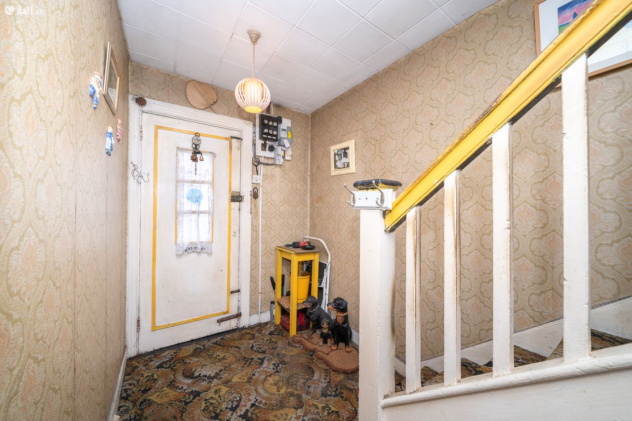 This superb property is situated on a corner site and is brimming with renovation and extension potential. The entrance hall comes with understairs storage and leads to the living accommodation. To the right of the hallway is a spacious living room with a feature fireplace and built in storage. The light filled dining area also boasts a fireplace and a hotpress. The kitchen opens to an amazing south facing garden with side access to the front of the property. The garden would be an ideal place to relax & entertain. Upstairs consists of two bedrooms to the front of the property and third bedroom and a family bathroom to the rear of the home. There is ample parking to the front of the property.