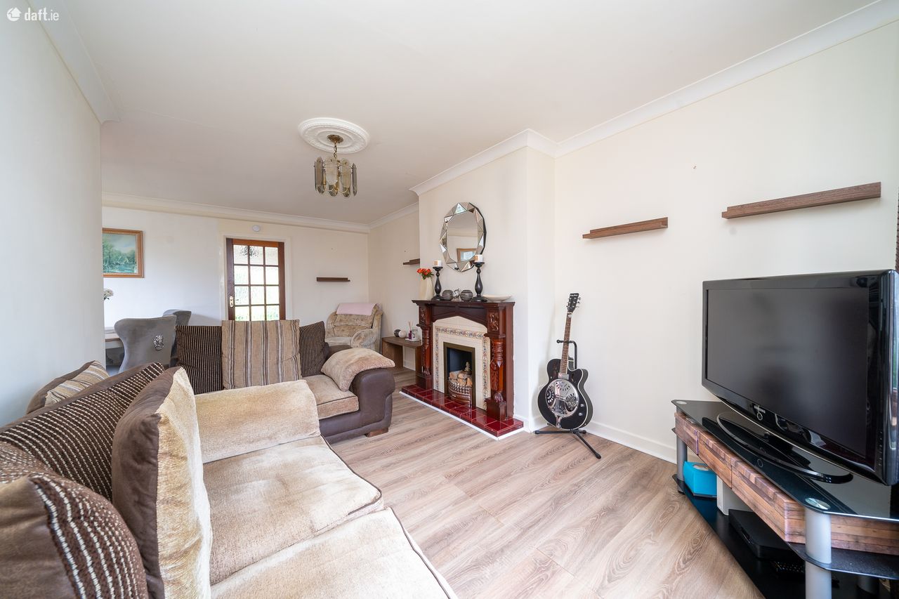 This superb property features a large gated front driveway and a manicured lawn. A storm porch with an attractive red brick facade opens to an entrance hall with a stained glass door, laminate floors and a guest w.c. The open plan dual aspect living room & dining area boasts laminate floors, a solid fuel fireplace, wall mounted shelving and ornate coving. The light filled open plan kitchen extension enjoys laminate floors, ornate coving, splashback tiling and plenty of counter & cupboard space. Sliding doors open to a manicured west facing garden and patio area with side access to the front of the property. The garden benefits from a storage shed, mature shrubbery and is ideal for relaxing & entertaining. Upstairs consists of two double bedrooms and the family bathroom. The generous sized fully tiled bathroom has an electric shower and plenty of storage. Both double bedrooms have comfy carpet and sophisticated fitted wardrobes. The main bedroom also incorporates the hotpress. The attic is accessed via the landing.