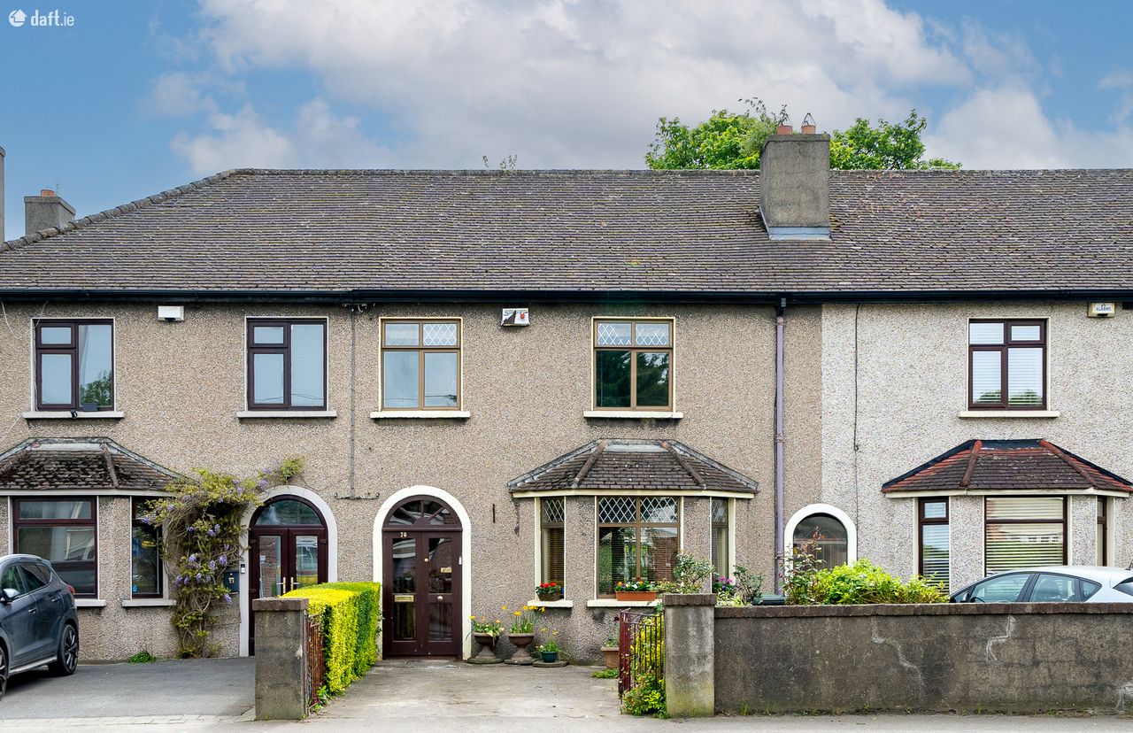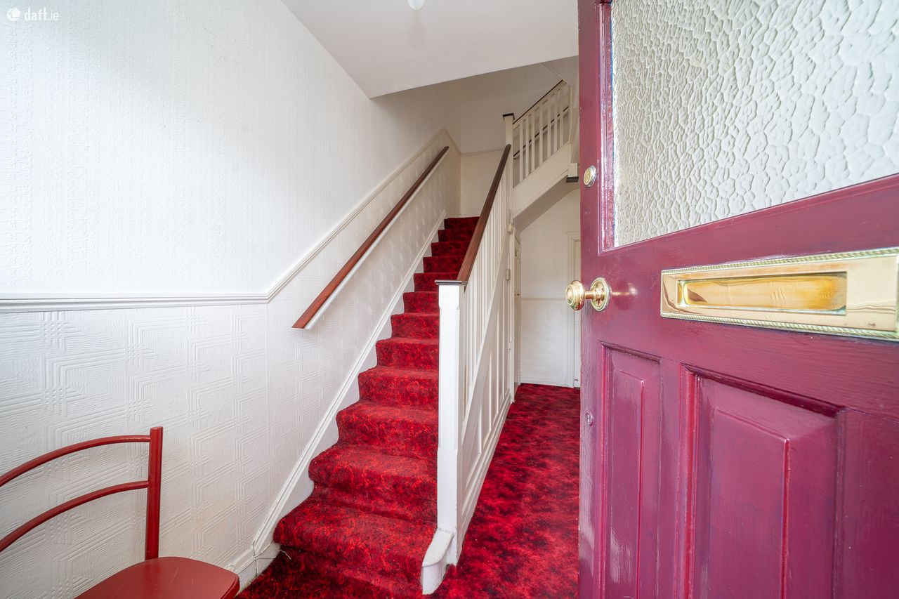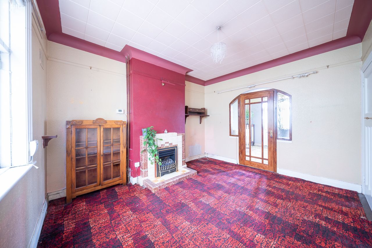 This superb property features a gated driveway and front garden leading to a storm porch with double doors and a tiled floor. The L shaped entrance hall has understairs storage and leads to the living accommodation. To the right of the hallway is a spacious living room with a solid fuel fireplace, a bay window, high ceilings and ornate coving. The dining area is connected to the living room and also enjoys high ceilings, ornate coving and a gas fireplace. The breakfast area boasts a solid fuel fireplace, ornate coving and leads to the kitchen extension and garden room. This light filled area has a tiled floor, splashback tiling, storage room and side access to the front of the property. The amazing south east facing garden is a mix of paving, flower beds and mature trees making it the ideal place to relax & entertain. Upstairs consists of three bedrooms and the family bathroom. The bathroom is currently divided in two and comes with a tiled floor, an electric shower and incorporates the hotpress. Both larger bedrooms have solid wooden floors and ornate fireplaces while the third bedroom has fitted wardrobes. The accommodation is completed by a spacious attic conversion with three Velux windows, eaves storage, fitted wardrobes and wooden floors.