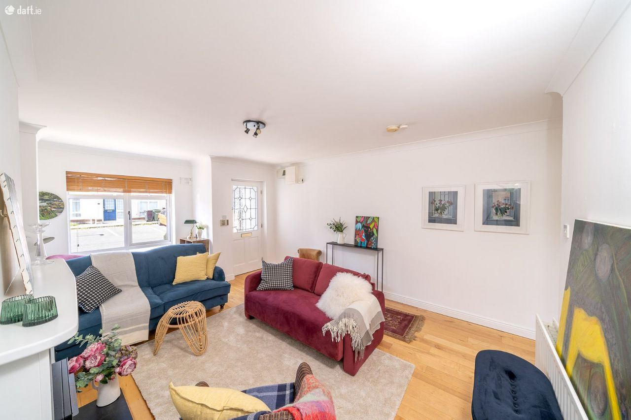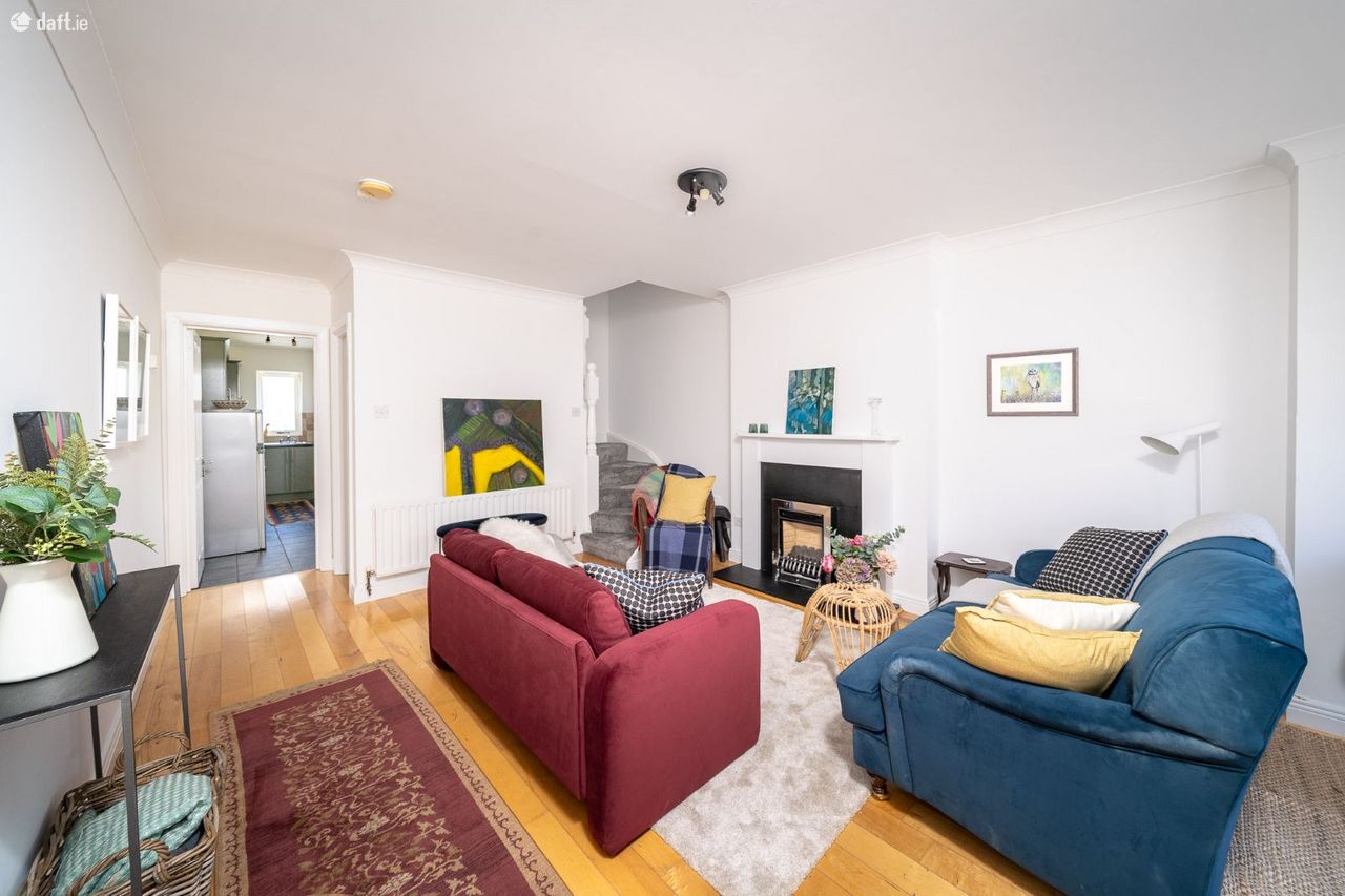 This superb property features a canopy and an attractive partial red brick facade. The light filled south west facing living room boasts solid wooden floors, a gas fireplace, ornate coving, understairs storage and space for a reading nook or home office. The open plan kitchen & dining area enjoys a tiled floor, splashback tiling, wood panelled ceiling and plenty of counter & cupboard space. A sliding door opens to the sunny garden & patio area which is the perfect place to relax & entertain. New carpet on the stairs & landing continues to two spacious double bedrooms which are positioned with one to the front of the home and one to the rear. Both bedrooms come with sophisticated fitted wardrobes while the hotpress is located in the back bedroom. The accommodation is completed by a generous sized family bathroom with a tiled floor, a raised bath tub and high spec sanitary ware. The attic is accessed via the landing This amazing home also benefits from communal parking to the front.