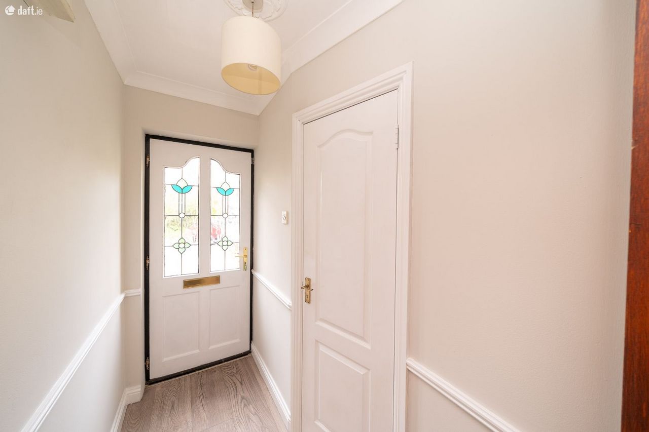 This amazing property features a cobblelock driveway leading to an attractive partial red brick facade. A stained glass front door opens to an entrance hall with laminate floors, ornate floors and a guest w.c. The spacious living room enjoys laminate floors, ornate coving and an electric fireplace. The light filled open plan kitchen & dining area can be accessed from the hallway & the living room and boasts a breakfast bar, ornate coving, a mix of laminate and tiled flooring, splashback tiling and plenty of counter & cupboard space. Sliding doors from the dining area open to an east facing patio & garden which can also be accessed from the kitchen. This suntrap is the perfect place to relax & entertain. Upstairs consists of three bedrooms with comfy carpet and sophisticated fitted wardrobes. The master bedroom also incorporates a stylish ensuite with a tiled floor. The landing provides access to the hotpress, built in storage and the attic.