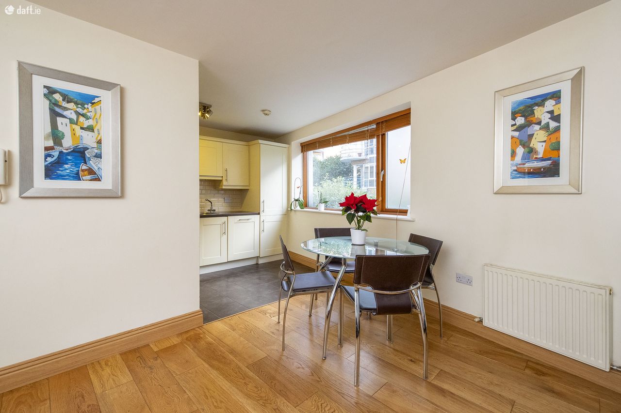 Luxury ground floor one-bedroom apartment with river views comes to market in turn-key condition The apartment is accessible via a private pedestrian entrance gate off Tyrconnell Road. Upon entering the property, a hallway with solid wood flooring, prevalent throughout the property, accesses the accommodation. The hallway accommodates a large storage closet. The kitchen/living area is laid out in a modern open plan design. The living room is spacious and welcoming, well-lit through large timber-frame windows flanking the corner of the room, a glass panelled door accessing the balcony. The kitchen design is stylish and practical, laid out in an L-shape and featuring a fully tiled floor, subway-style splashback tiling, integrated appliances and quality counters and cabinetry. The South-West facing balcony is a charming additional space, fully decked with steel and frosted glass balustrades, an ideal space to relax. The bedroom is sizeable and bright with solid wood flooring, in-built wardrobe storage and is wired for cable TV. The bathroom is large with a fully tiled floor, a back-tiled bath/shower unit, a large wall mounted mirror, heated towel rail and modern sanitaryware. The property is ideally situated in Inchicore Village along Tyrconnell Road. There are a number of local shops and services and numerous neighbourhood amenities including the Grand Canal cycle/walk ways, the Irish National War Memorial Gardens and the Irish Museum of Modern Art (IMMA). Public transport options include a series of central bus routes or the Red Line LUAS, accessible via the Blackhorse LUAS stop