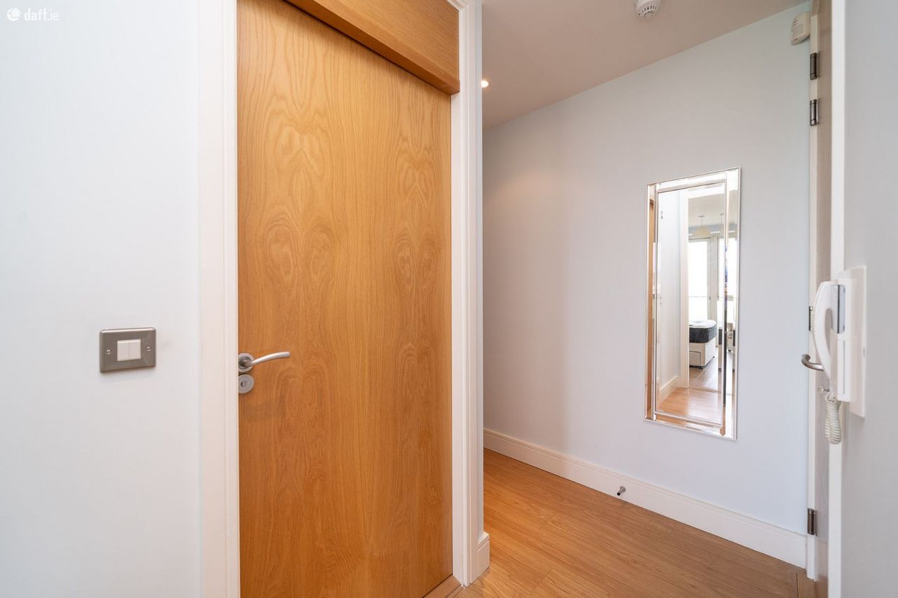 This exceptional property features an L shaped hallway with laminate floors, a storage room and TV Intercom. To the right of the hallway is a generous sized family bathroom with a tiled floor, spotlights and built in storage. The spacious double bedroom boasts laminate floors, sophisticated fitted wardrobes and access to a sunny balcony. The light filled open plan living room & dining area enjoys a dual aspect, floor to ceiling windows, laminate floors and access to a large balcony which overlooks a green area and has views of The Dublin Mountains. The accommodation is completed by a fully integrated high spec L shaped kitchen with a tiled floor, splashback tiling and plenty of counter & cupboard space. The utility is ideally positioned just off the kitchen. This amazing apartment also benefits from underfloor heating, a designated underground car space and is serviced by a lift.