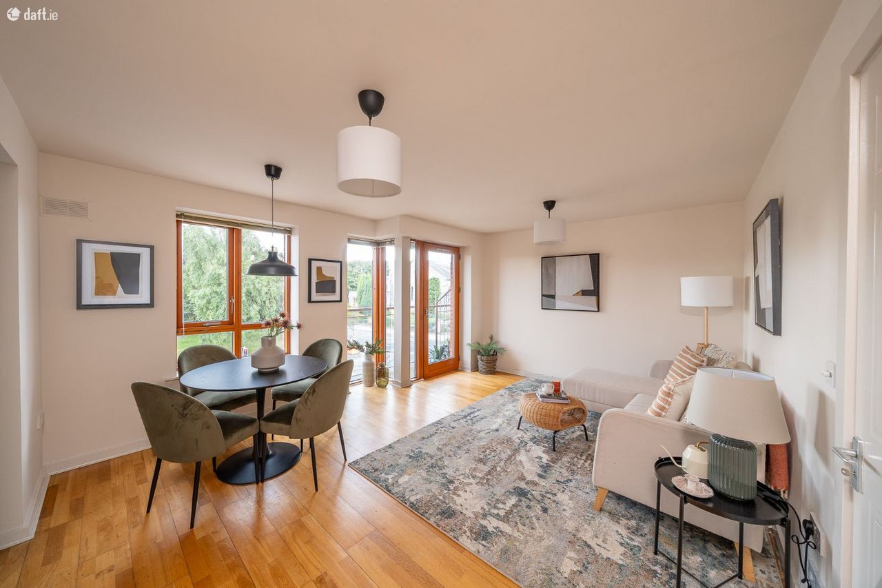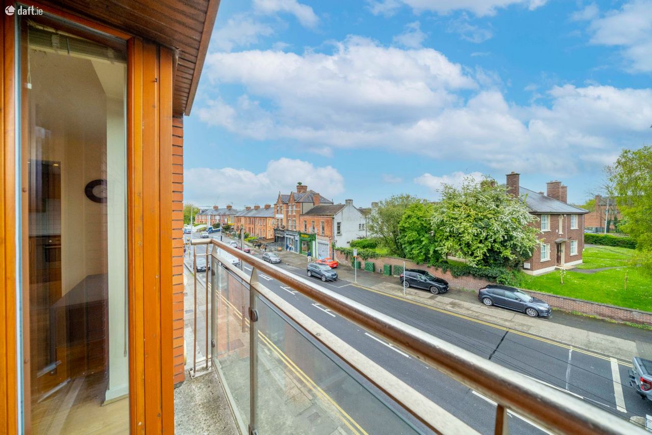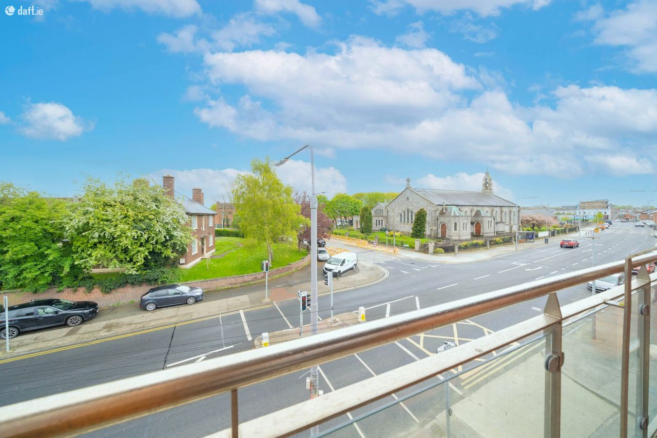 Exceptional two bedroom top floor dual aspect apartment comes to the market in superb condition. This stylish apartment features an entrance hall with timber floors and a utility room. The generous sized family bathroom comes with a tiled floor. To the left of the hallway are two spacious double bedrooms with fitted wardrobes, deep pile carpet and amazing views of Richmond Park the home to St. Patrick's Athletic. To the right of the hall is a light filled open plan living & dining room with wooden floors, floor to ceiling windows and access to a south facing balcony. The living space also incorporates a large hotpress and storage room. The accommodation is completed by a U shaped kitchen boasting a tiled floor, splashback tiling and plenty of counter & cupboard space. The apartment also benefits from a secure underground car space and the added bonus of a communal rooftop terrace.