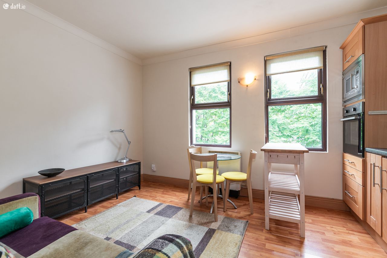Stunning one bedroom apartment comes to the market recently refurbished in the heart of Dublin City. Upon entering the apartment, the open plan kitchen and living area benefits from two large windows allowing natural light to spill in as well as laminate floors throughout. The L- shaped kitchen was recently upgraded with modern cabinetry and integrated appliances.
