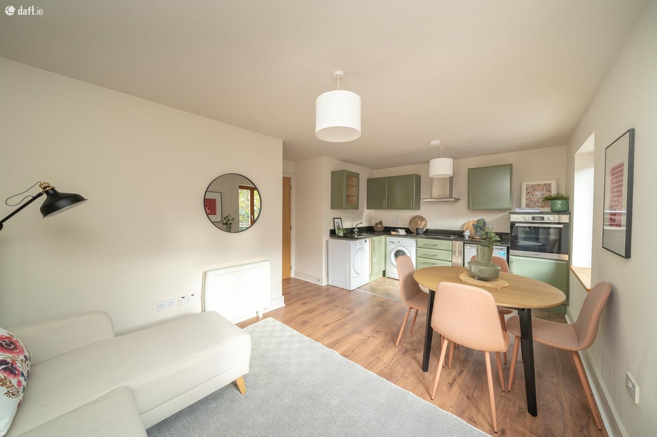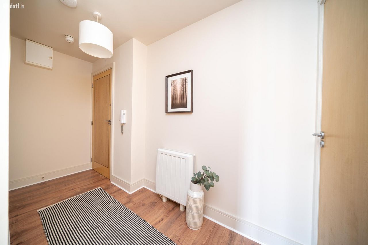 This stunning dual aspect property features an entrance hall with new laminate floors, a storage room and a hotpress. The new laminate floors continue to a spacious west facing double bedroom which also comes with sophisticated fitted wardrobes. The generous sized family bathroom boasts a tiled floor and an electric towel radiator. The south facing open plan living room, dining area & kitchen is a light filled space with two windows making it perfect for relaxing and entertaining. There are laminate floors in the living & dining area while the L shaped kitchen has a tiled floor and plenty of counter & cupboard space. This fantastic apartment also benefits from a secure designated car space and is serviced by a lift.
