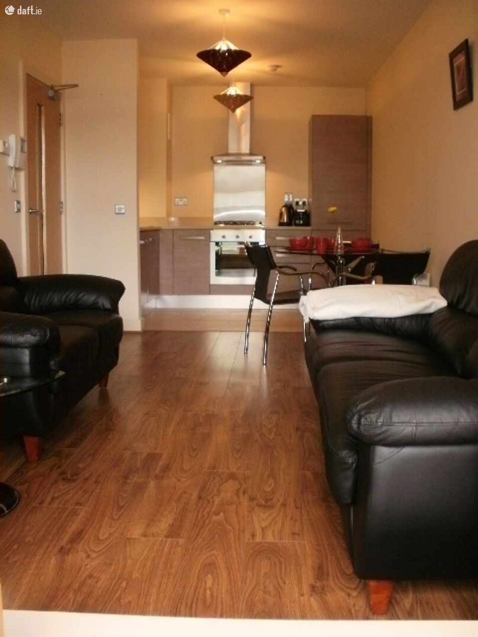 Large one double bedroom apartment available to rent in the upmarket development of Kilmainham Square. Accommodation comprises of a spacious living area with wooden floors throughout.High spec kitchen with fully integrated appliances. Double bedroom with fitted wardrobe. Large family sized bathroom & balcony complete the finish of this must-see apartment. Lift access from the lobby & underground car park space included.