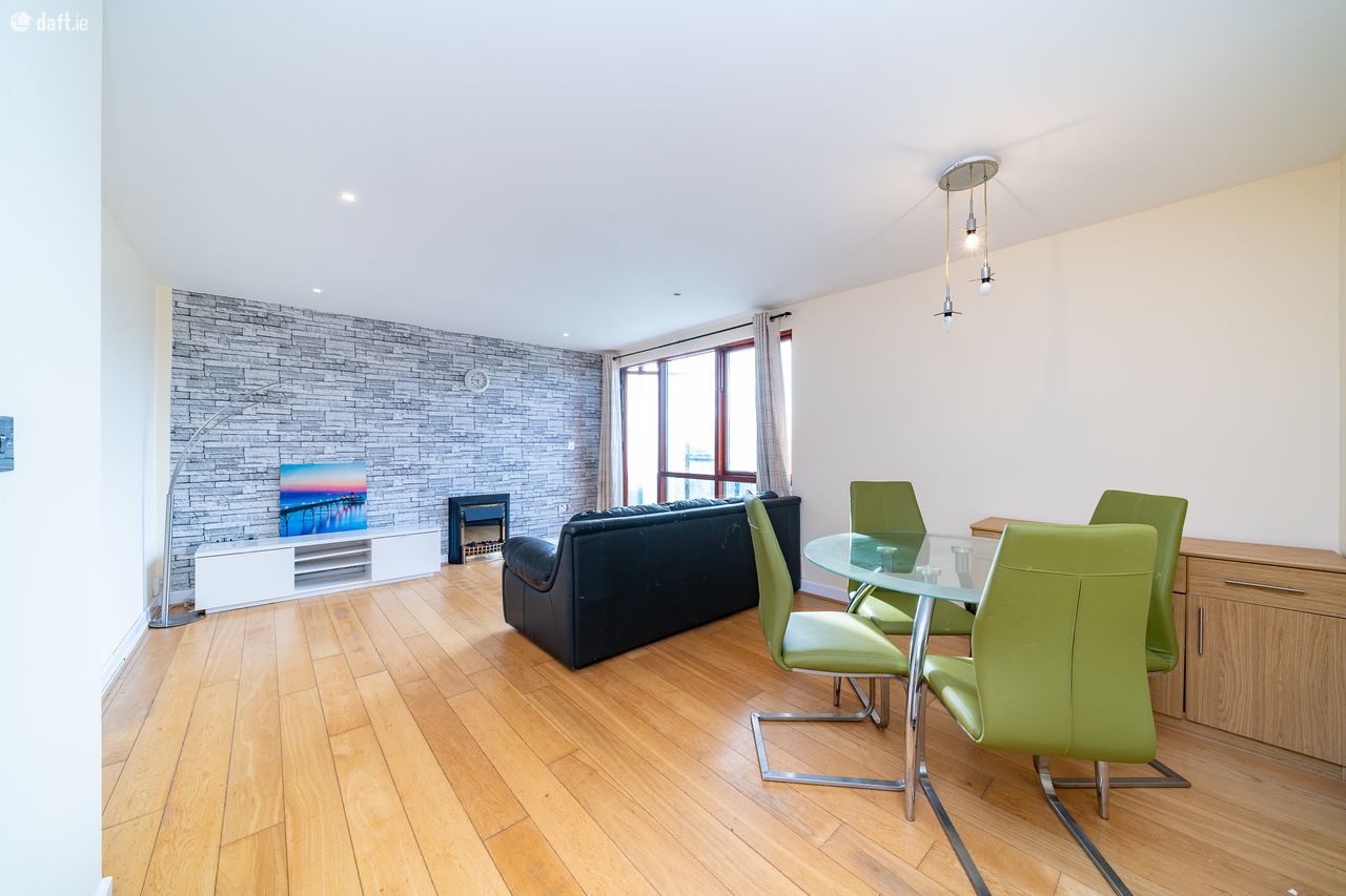This stylish property features an L shaped entrance hall with laminate floors, two storage rooms and a hotpress. There are two spacious east facing double bedrooms with laminate floors, sophisticated fitted wardrobes, large windows and spotlights. The master bedroom also incorporates a fully tiled ensuite. The generous sized fully tiled family bathroom matches the ensuite. The light filled open plan living room & dining area has laminate floors, spotlights and access via floor to ceiling doors and windows to a west facing decked balcony overlooking The Dublin Mountains making it a great place to relax and entertain. The accommodation is completed by an L shaped kitchen which is ideally positioned next to the dining space. The kitchen boasts a tiled floor, splashback tiling and plenty of counter & cupboard space. This amazing apartment also benefits from secure underground parking and is serviced by a lift.