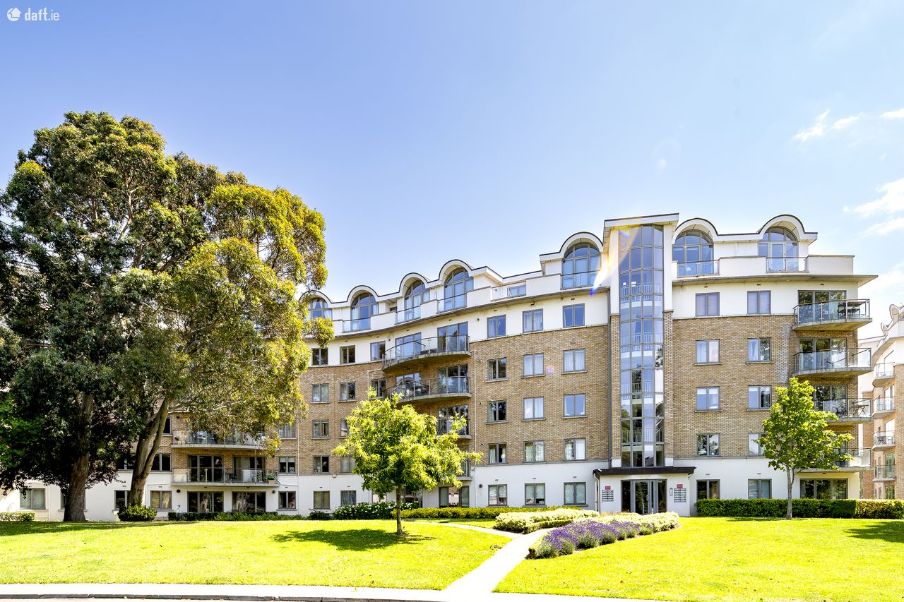 This amazing property features an entrance hall with laminate floors, a hotpress and a TV intercom. The spacious master double bedrooms boasts sophisticated fitted wardrobes & laminate floors and incorporates a fully tiled ensuite. The second double bedroom also enjoys laminate floors and fitted wardrobes. To the right of the hallway is a generous sized fully tiled family bathroom. The light filled open plan living room and dining area comes with an electric fireplace, ornate coving and access to a west facing tiled balcony overlooking manicured gardens with mature trees making it an ideal place to relax. The accommodation is completed by a high spec kitchen with a tiled floor, splashback tiling and plenty of counter & cupboard space.. This superb apartment benefits from a parking permit and is serviced by a lift.