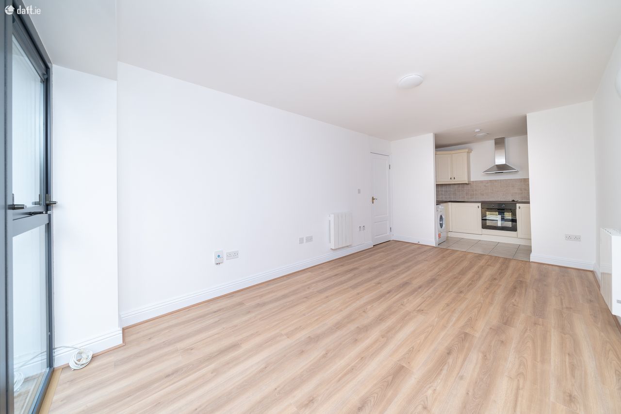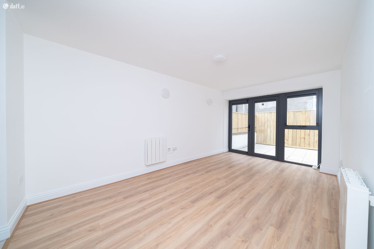 This superb apartment features an entrance hall with new laminate floors and a hotpress. The laminate floors continue to a spacious double bedroom which is located on the right of the hallway and also comes with sophisticated fitted wardrobes. To the left of the hallway is a generous sized family bathroom with a tiled floor and partially tiled walls. The light filled open plan living room and dining area also has laminate floors and floor to ceiling windows. The private west facing paved courtyard is accessed from the living area and is an ideal place to relax & entertain. The accommodation is completed by a U shaped kitchen ideally positioned next to the dining area. The kitchen boasts a tiled floor, splashback tiling and plenty of counter & cupboard space. The apartment also has a new electric heating system.