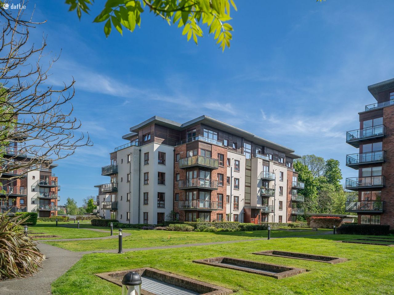 This stunning property features an entrance hall with laminate floors, a storage room and a hotpress. The first double bedroom is a corner room with two windows, laminate floors and sophisticated fitted wardrobes. The generous sized family bathroom boasts a tiled floor, partially tiled walls, spotlights and high spec sanitary ware. The spacious east facing master bedroom has laminate floors, fitted wardrobes and incorporates a stylish ensuite. The third bedroom also has laminate floors and fitted wardrobes. The light filled open plan living room, dining & kitchen enjoys a dual aspect, floor to ceiling windows, laminate floors, splashback tiling and plenty of counter & cupboard space. The corner decked balcony overlooks manicured communal gardens making it an ideal place to relax & entertain. This exceptional apartment also benefits from two undergound car spaces and is serviced by a lift.