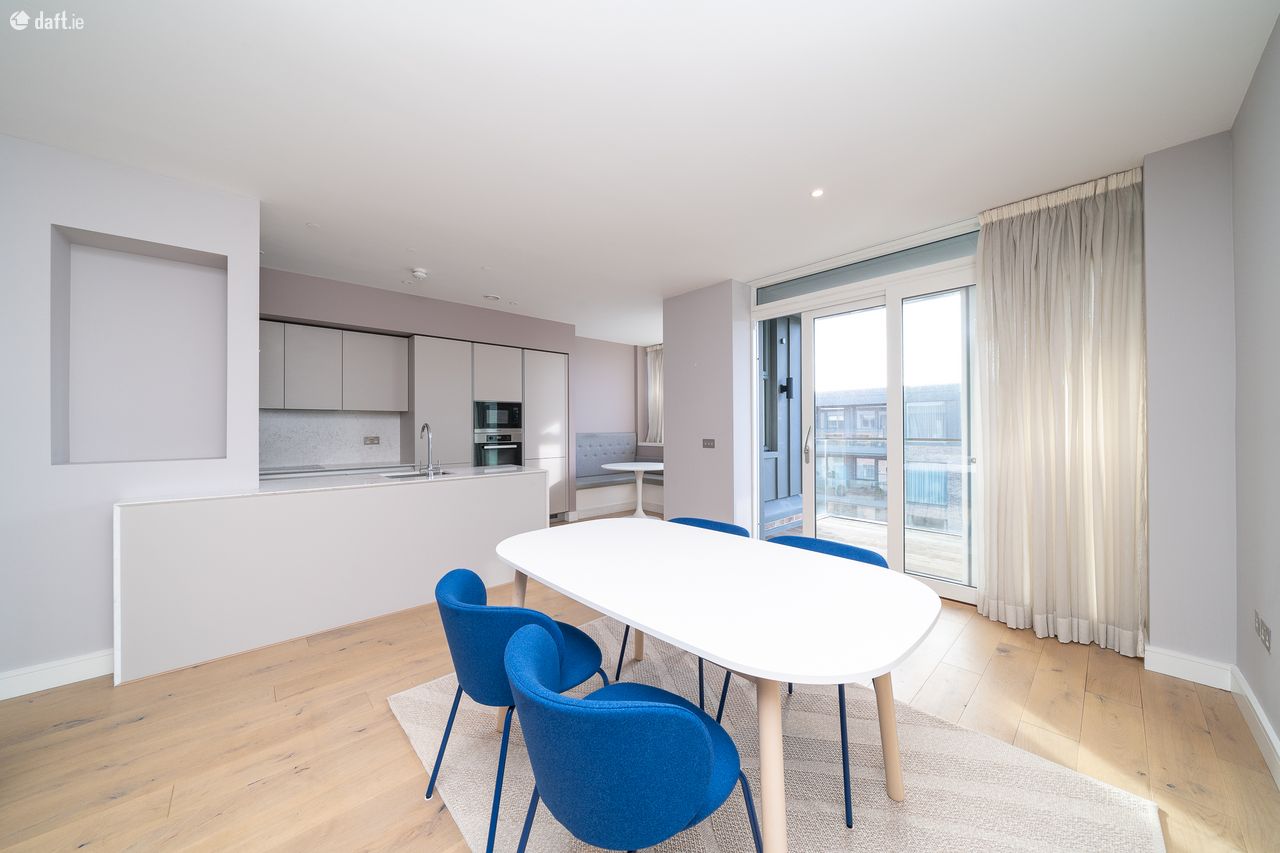 Stunning two double bedroom and two bathroom apartment available to rent in one of the most sought after developments in Dublin 6, The Marionella Development. This superb apartment is furnished to an extremely high standard with bespoke furnishing and fittings. Accommodation comprises of a welcoming entrance hallway that leads onto a large , bright , light-filled , spacious living area with solid wooden floors and stylish furniture throughout. The rear of the living area leads out to a very wide south- facing balcony. The Kitchen is modern in design and complete with custom designed Leicht kitchens with Carrara Silestone countertops with fully integrated Miele appliances and large fridge freezer complete with a custom built booth-style dining area adjacent. There is also a separate utility room with washing machine and dryer.