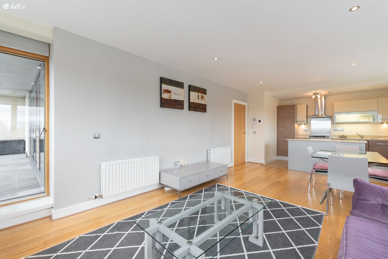 Superb two double bedroom 8th floor, penthouse apartment available to rent in one of the most sought after developments in Dublin 8, kilmainham square. The apartment enjoys lift access from the lobby and underground car park. On entering there is a wide hallway with engineered oak floors, giving a contemporary yet warm finish. At the end of the hallway is a large kitchen living space which features the same floor finish. This is bright airy room with large windows, recessed lighting and incorporates a dining space. The kitchen is of a high specification with fully integrated appliances, tiled floors and features quartz worktops, tall fridge freezer and chimney style extractor. The apartment accommodates two double bedrooms, a main bathroom and an en-suite. Both bedrooms feature attractive built in wardrobes, deep pile carpets and access to a large 14 sq. balcony. The master bedroom incorporates the en-suite bathroom. Both bathrooms feature high spec sanitary ware and are well finished with Italian tiles. The development enjoys a prime location in one of Dublin's most popular City Centre Suburbs. The Irish Museum of Modern Art together with their renowned gardens is situated across the road. The War Memorial Gardens are a five minute walk away featuring river walks and walled gardens. The complex itself incorporates a crche, a caf, a gallery and the Hilton Hotel with state of the art leisure facilities. Although the City Centre is within walking distance, the LUAS is close by and a Dublin Bike station is located on the concourse. Joint Agents Brock Delappe and Hooke & Mac Donald