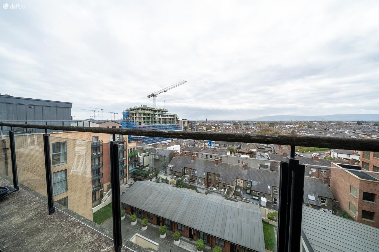 This stunning apartment is located on the 6th floor and features an entrance hall with laminate floors, a hotpress and two storage rooms. To the right of the hallway are two spacious double bedrooms with laminate floors and sophisticated fitted wardrobes. The main bedroom also has access to the large south west facing decked terrace with amazing views of The Dublin Mountains. The generous sized family bathroom has a tiled floor and partially tiled walls. The light filled open plan living room and dining area has laminate floors and double doors to the terrace. The accommodation is completed by an L shaped kitchen which enjoys a checkered tiled floor, splashback tiling and plenty of counter & cupboard space. This fantastic apartment also benefits from a secure underground designated car space and is services by a lift.