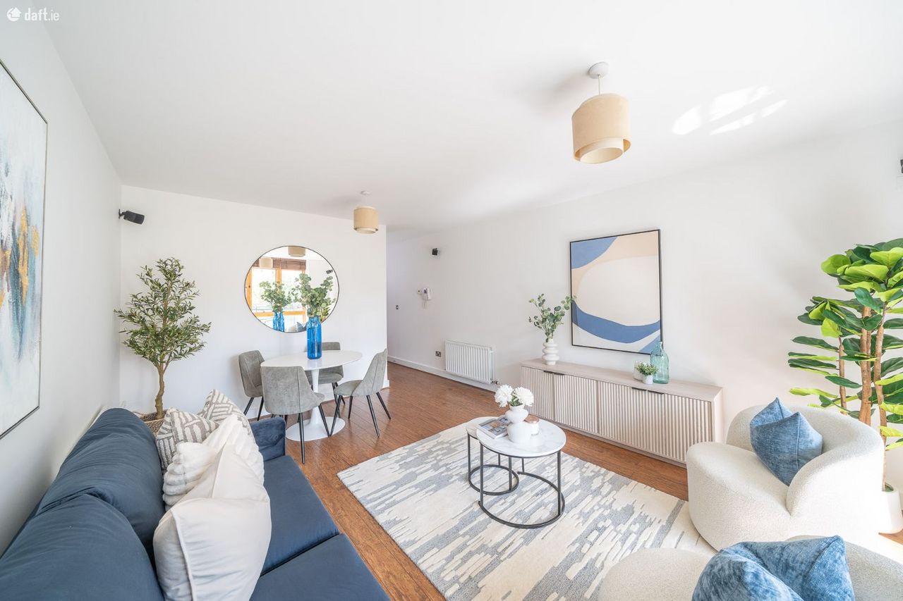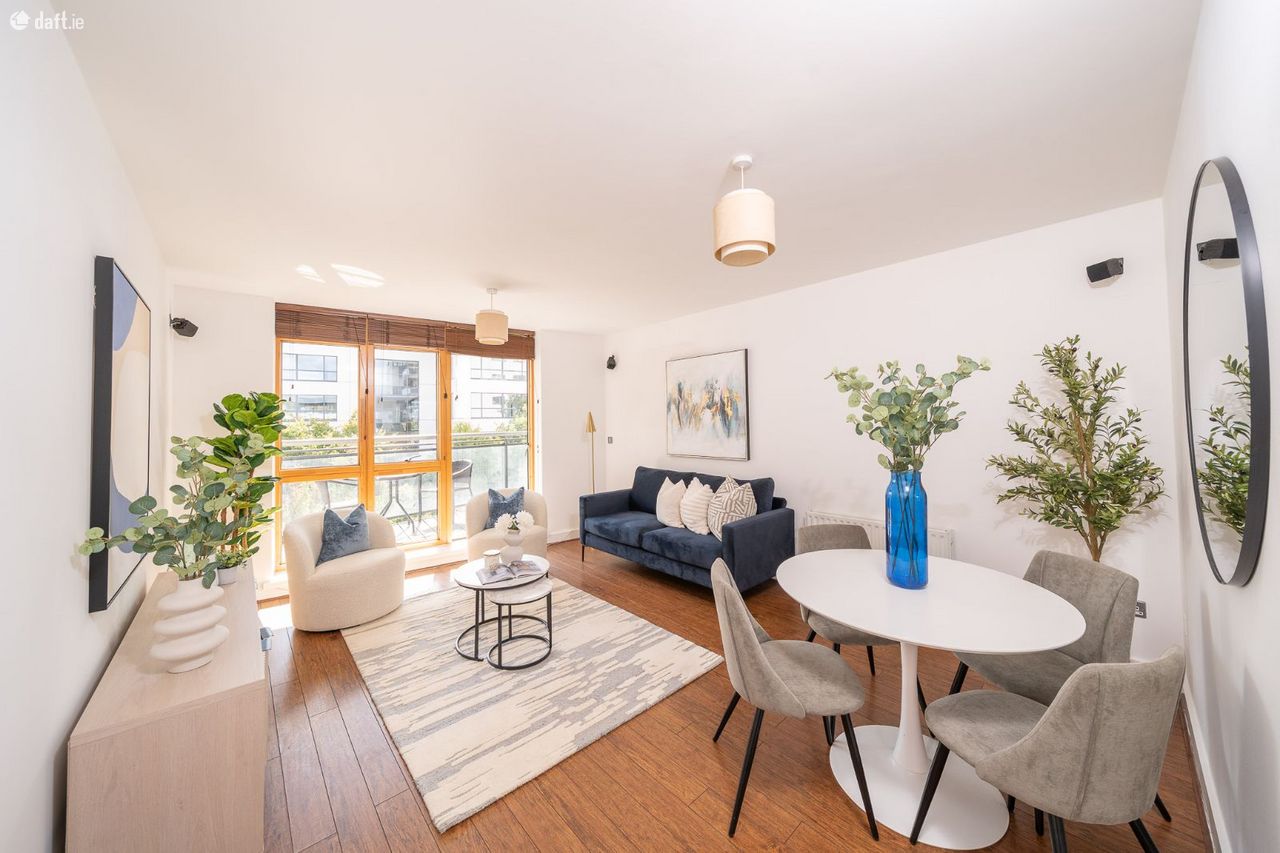 This superb property features an L shaped entrance hall with a storage room and laminate floors. The laminate floors continue to all three bedrooms which boast sophisticated walnut fitted wardrobes. Both double bedrooms enjoy access to a decked balcony with amazing views of The Phoenix Park. The master bedroom incorporates a stylish fully tiled ensuite with underfloor heating & built in storage while the smallest bedroom could also make a superb home office. The generous sized family bathroom matches the ensuite being fully tiled and with underfloor heating & built in storage. The high spec fully integrated kitchen comes with a tiled floor, splashback tiling, plenty of counter & cupboard space and a utility room. The light filled open plan living room & dining area has laminate floors, floor to ceiling windows and access to a south west facing decked balcony overlooking manicured communal gardens making it an ideal place to relax & entertain. This amazing apartment also benefits from a secure designated car space and is serviced by a lift.