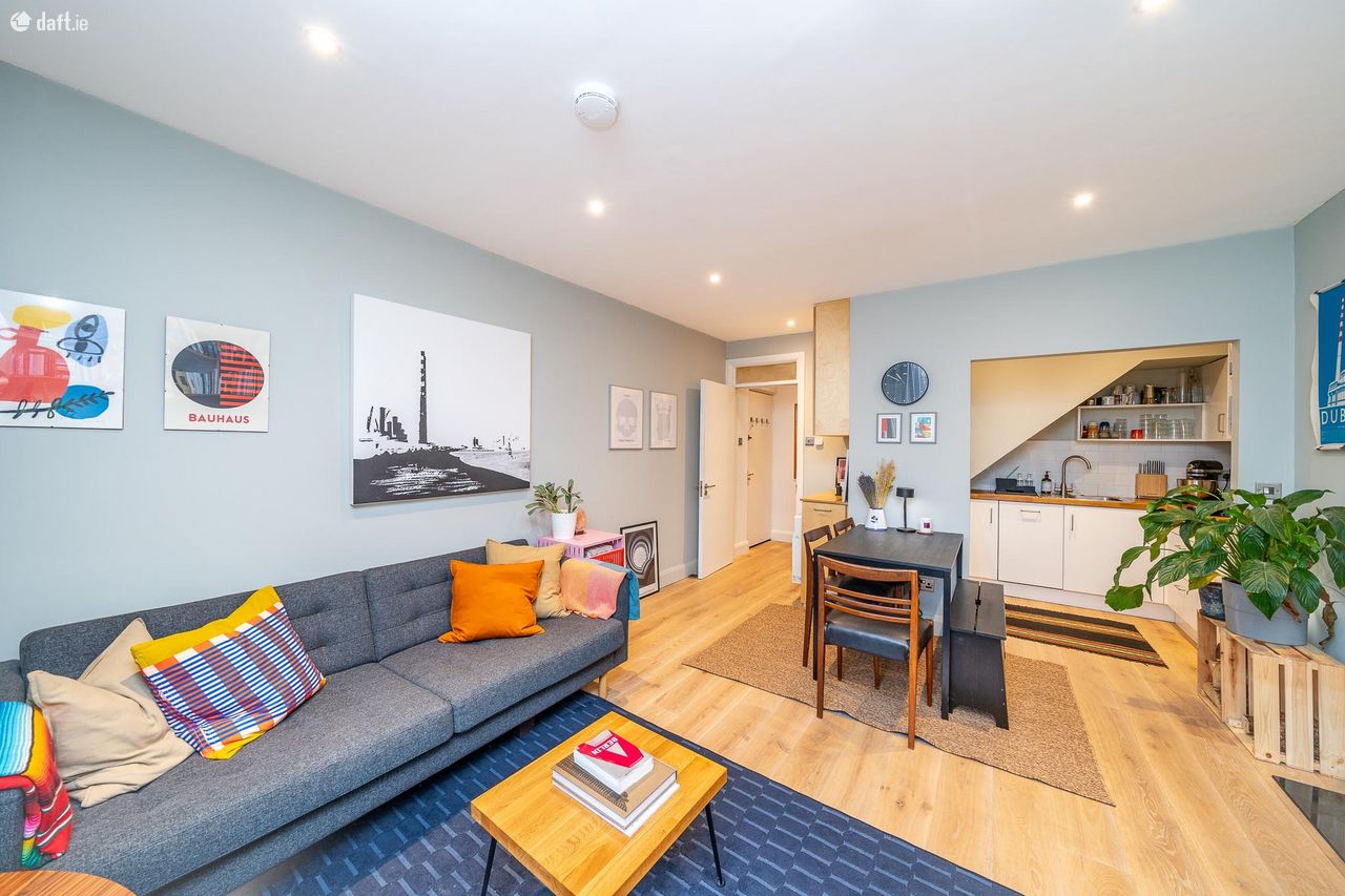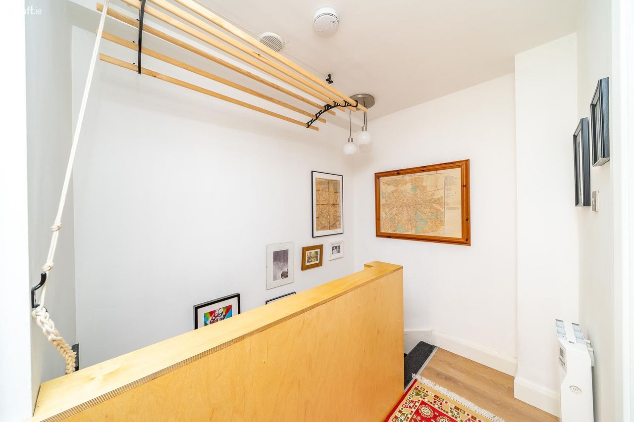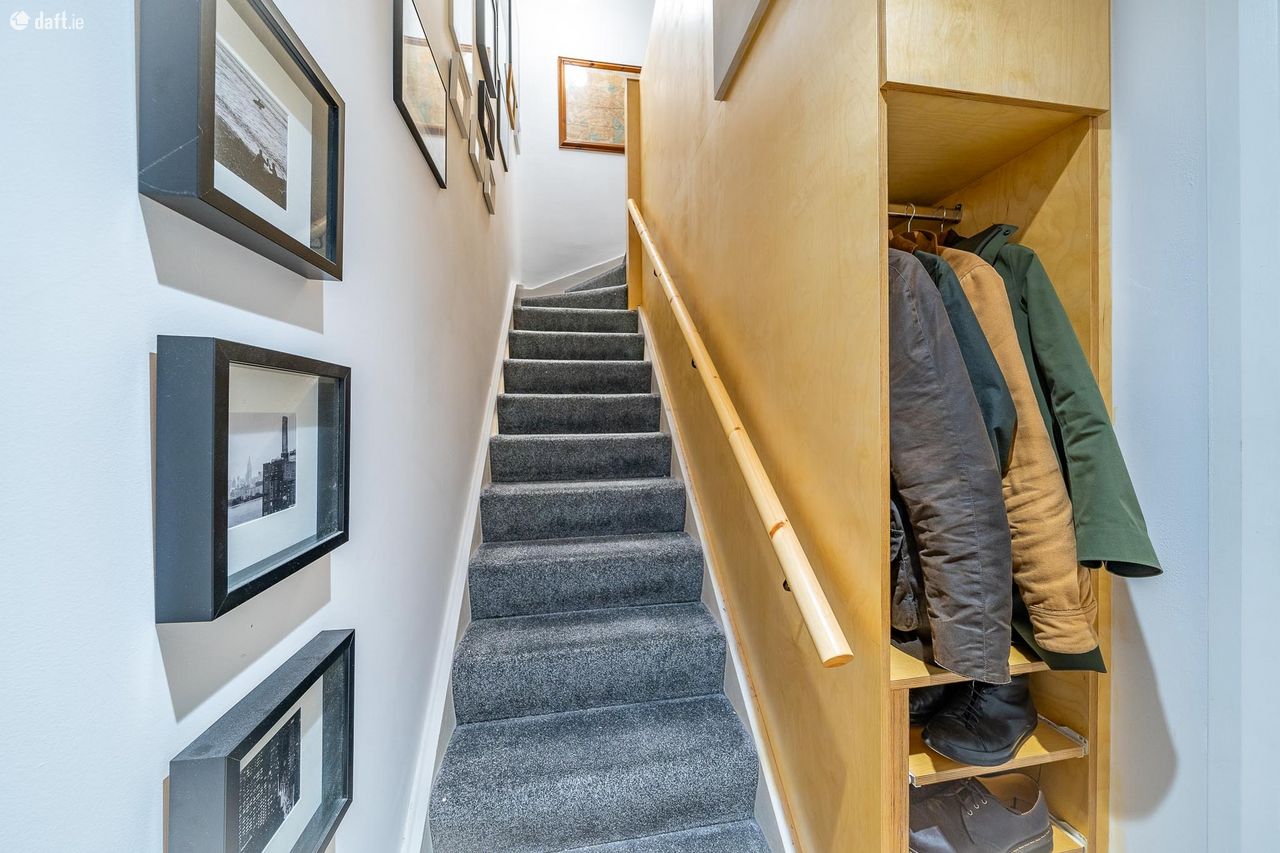 This stunning property features an external stairwell leading to an attractive brick faade. The property has been externally insulated, has new windows & doors and a new heating system. The entrance hall features engineered oak floors & built in storage and leads to a light filled open plan living room, dining area and kitchen. The eye catching interior boasts oak floors, a solid fuel stove and built in storage & shelving. The living room opens to a decked balcony, the ideal place to enjoy a morning coffee. The fully integrated kitchen enjoys a solid oak counter, spotlights, splashback tiling and plenty of counter & cupboard space. Upstairs consists of two spacious double bedrooms bedrooms with engineered oak floors and storage space. The accommodation is completed by a generous sized stylish bathroom with a replumbed pressurised water system, tiled floor, partially tiled walls, high spec sanitary ware and storage. The hotpress is located on the landing and there is also a Stira to a large attic. This fantastic apartment also benefits from a designated car space.