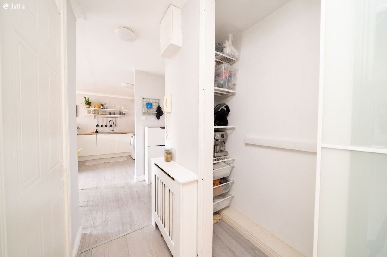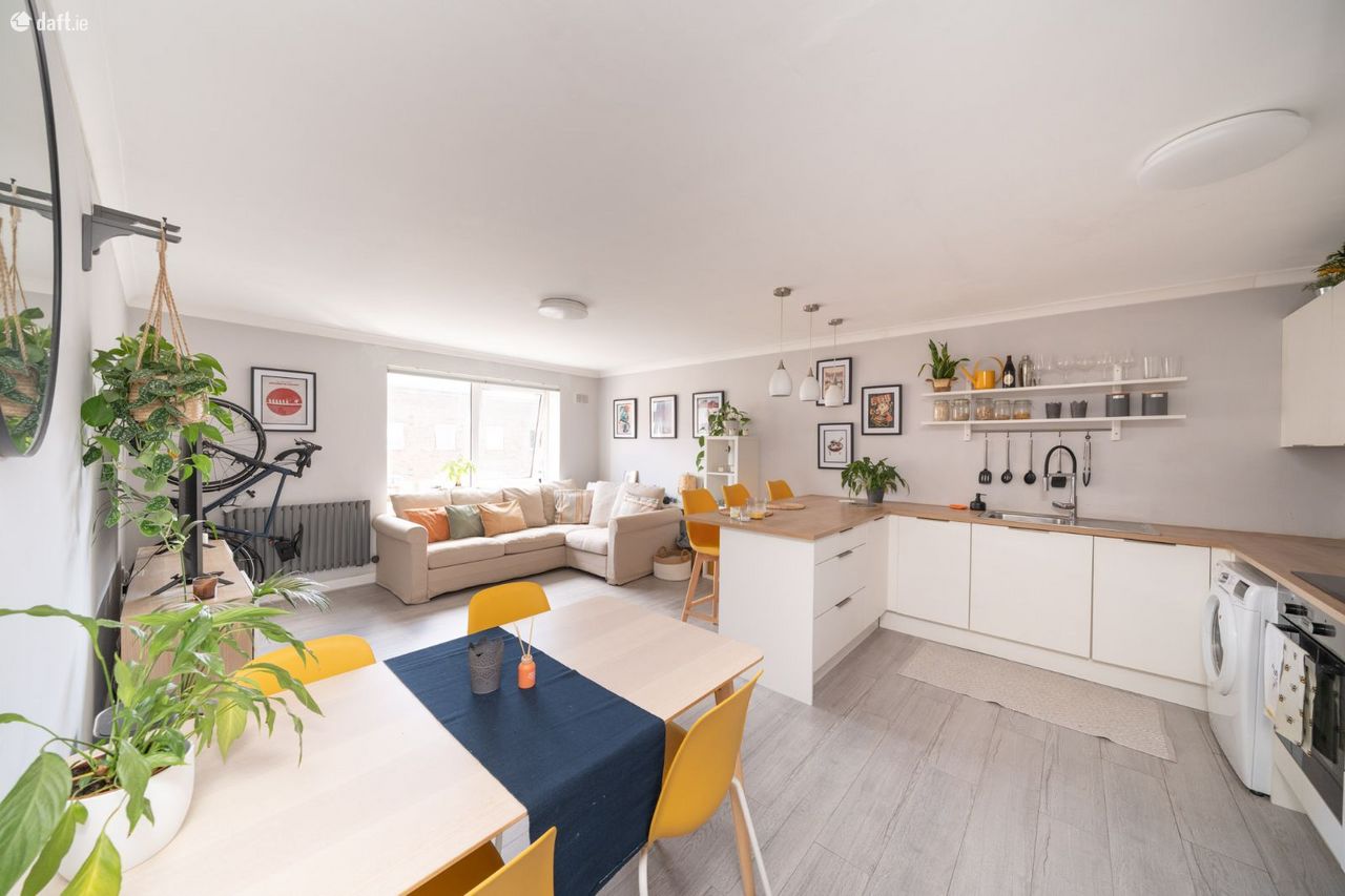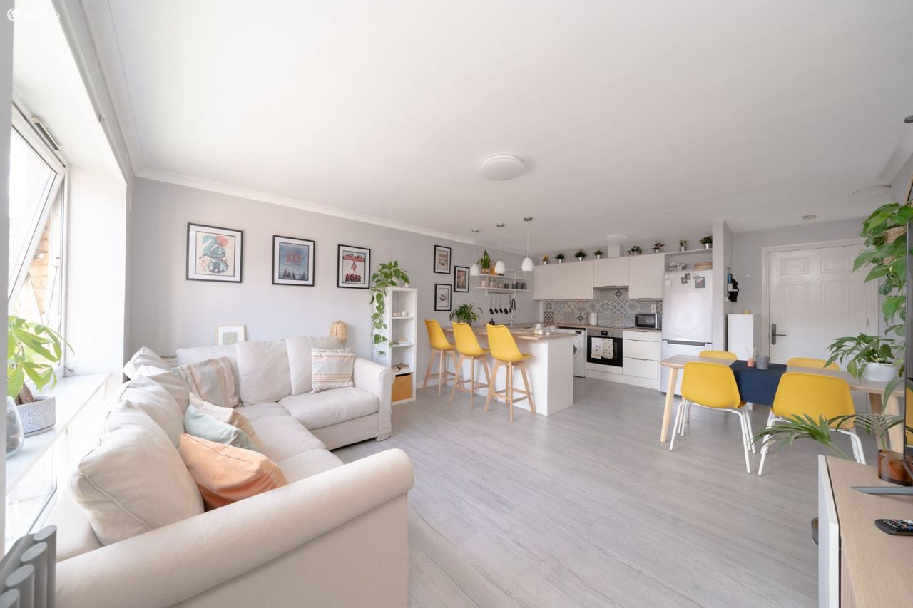 This stunning property features an entrance hall with laminate floors, two storage rooms and a hotpress. The new laminate floors continue to a light filled open plan living room, dining area and kitchen. The high spec U shaped kitchen boasts a breakfast bar, splashback tiling and plenty of counter & cupboard space. There are two double bedrooms with laminate floors and the main bedrooms also enjoys sophisticated fitted wardrobes. The second bedroom is currently used a home office. The accommodation is completed by a generous sized fully tiled bathroom with high spec sanitary ware, a towel radiator and storage space. This superb apartment has a stylish interior, a new electric heating system and also benefits from a secure designated car space. The property is also serviced by a lift.