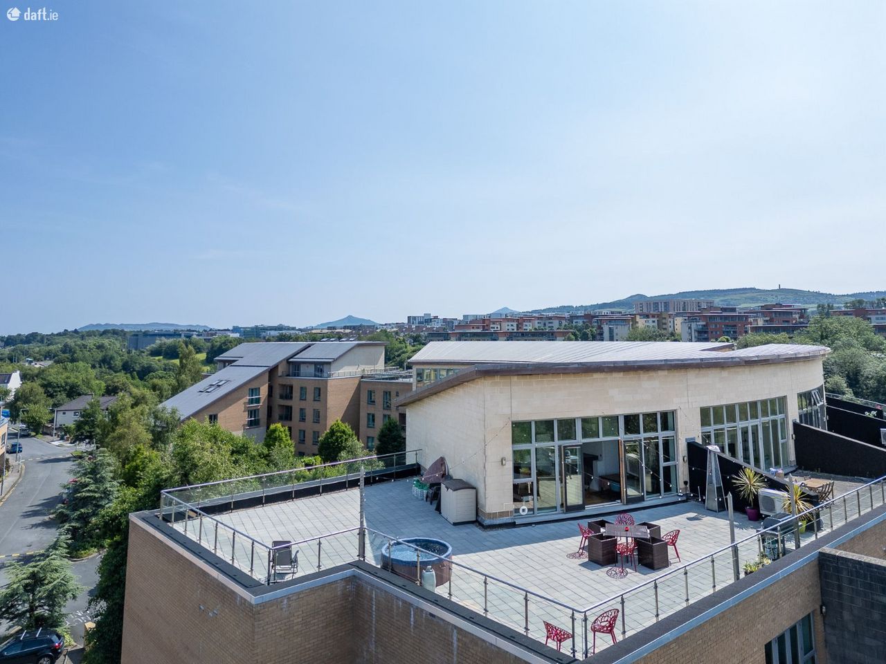 This amazing property is located on the 4th & 5th floor and features an entrance hall with a tiled floor and a storage room. To the left of the hallway is a generous sized fully tiled family bathroom with high spec sanitary ware. The master bedroom boasts wooden floors, a walk-in-wardrobe, a large window overlooking manicured communal gardens and incorporates a stylish ensuite with mosaic tiling. The second bedroom also enjoys wooden floors, a large window, sophisticated sliderobes and a fully tiled ensuite. There is a third light filled bedroom upstairs and this room could also make a perfect home office. The spacious open plan living room and dining area comes with wooden floors, high ceilings, floor to ceiling windows and access to the south west facing terrace. This fantastic paved terrace is perfect for relaxing & entertaining and enjoys an amazing vista of The Dublin Mountains and city skyline. The accommodation is completed by a separate high spec kitchen with a tiled floor and plenty of counter & cupboard space. This spectacular property also benefits from two underground designated car spaces and is serviced by a lift.