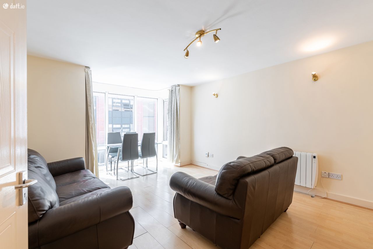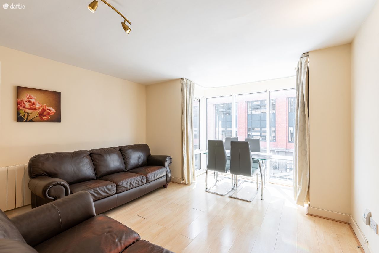 Brock Delappe Estate Agents proudly present this beautifully spacious one double bedroom apartment located in the much sought after area of Dublin two. College Gate is located next door to The Markievicz leisure centre & The Irish Times building. This 2nd floor apartment consists of a large stylish sitting room with wooden floors throughout, separate kitchen with all mod cons & features, large fully tiled bathroom with electric shower, storage area & hallway complete the make -up of this must see apartment, storage heating throughout, waste / rubbish included in price. There is no parking with this property