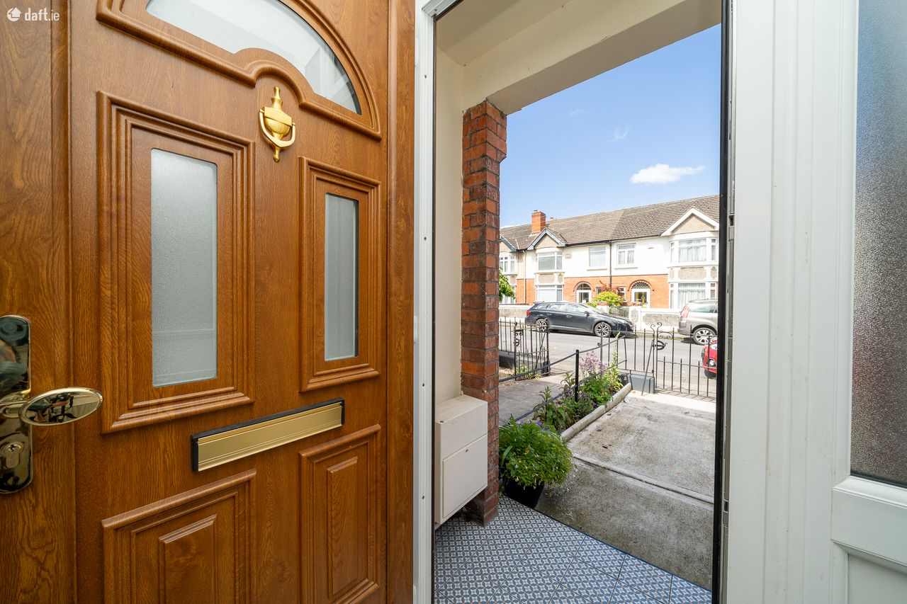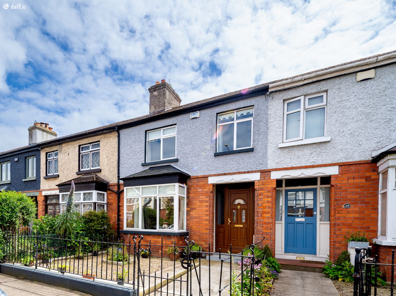 This charming property features an attractive partial red brick facade and front garden with an exterior porch. The entrance hall has a tiled floor and understairs storage. To the left of the hallway is a spacious living room with laminate floors, a bay window and a built in solid fuel stove. The light filled dining area comes with alcove storage and comfy carpet. The kitchen extension boasts a a tiled floor, splashback tiling and plenty of counter & cupboard space. The kitchen opens to an amazing south facing garden with rear pedestrian access and a purpose built shed. Upstairs consists of three bedrooms and the family bathroom. The generous sized bathroom has a tiled floor, partially tiled walls, an electric shower and wall mounted storage. The first double bedroom is situated at the rear of the home and has an ornate fireplace and carpet flooring. The main bedroom is located at the front of the home and has an ornate fireplace, sophisticated fitted wardrobes, shelving and an in built home office. The third bedroom also has a fitted wardrobe and carpet. The landing enjoys a Velux window, access to the attic and incorporates the hotpress. This fantastic property also benefits from free on street parking.