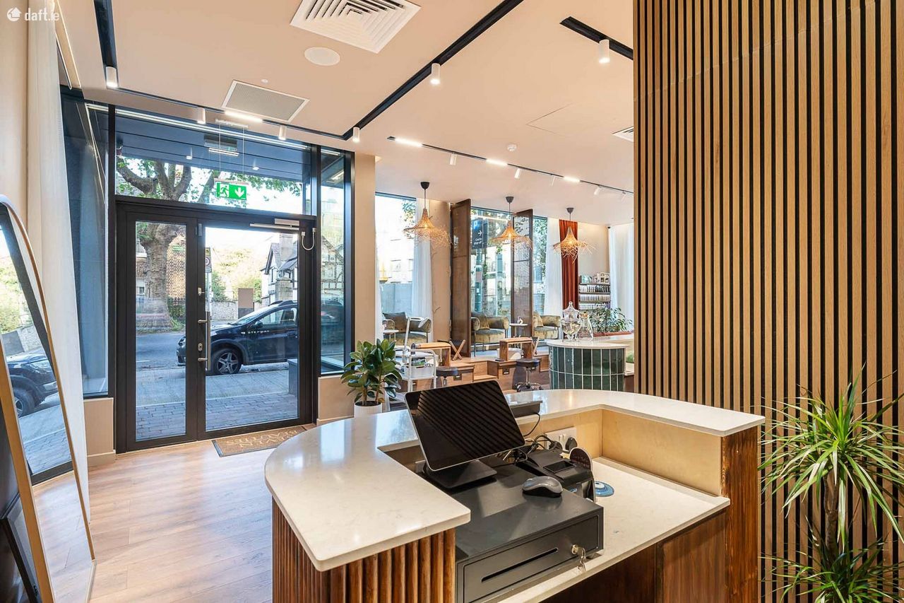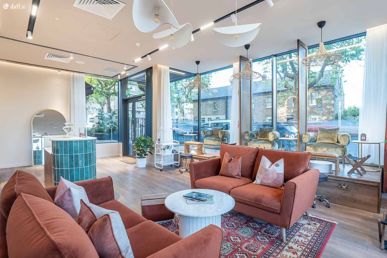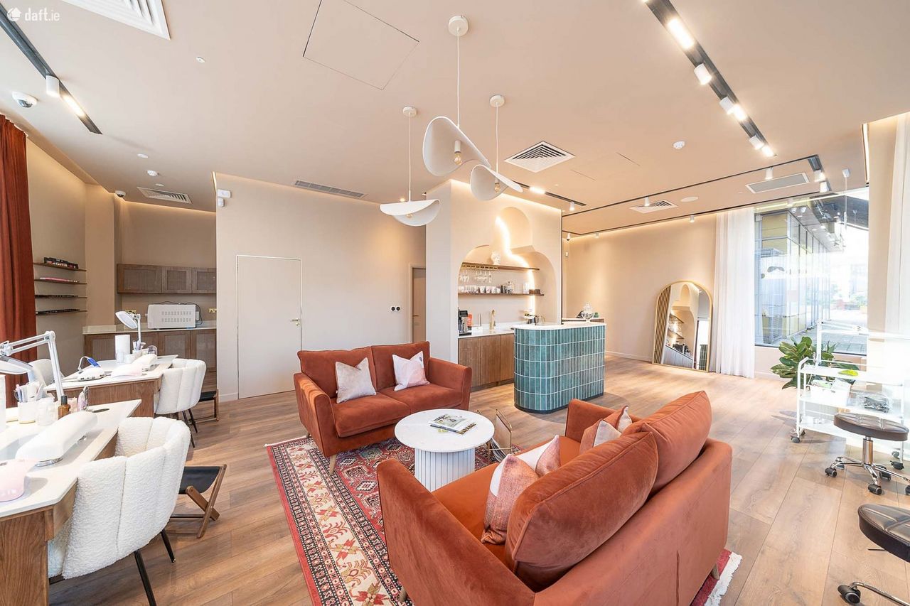 Luxury commercial unit finished to a high standard, current fitted out as a nail bar but would suit a variety of uses. This unit comes full equipped to be operated as a high end nail bar. The unit would be ideal as a showroom for a variety of luxury products. To the front of the unit is a storm porch. On entering the salon is open plan. There is a reception desk and mineral bar. Each are finished with quartz countertops. The mineral bar features a sink, cabinetry and espresso making facilities. The unit has 6 stations, three for manicures and 3 for pedicures. The pedicure stations are complete with foot spa and a water supply. The unit is finished with wide plank wooden floors, high end lighting and large windows with shear curtains. Ancillary to the salon is a store room with build in units, a high spec staff kitchen, accessible bathroom and separate treatment room. The nail bar is already branded as Seven Beauties and this brand is featured in the fitout and the inventory. The unit benefits from an excellent location, close to the Phoenix Park, River Liffey and City Centre.
